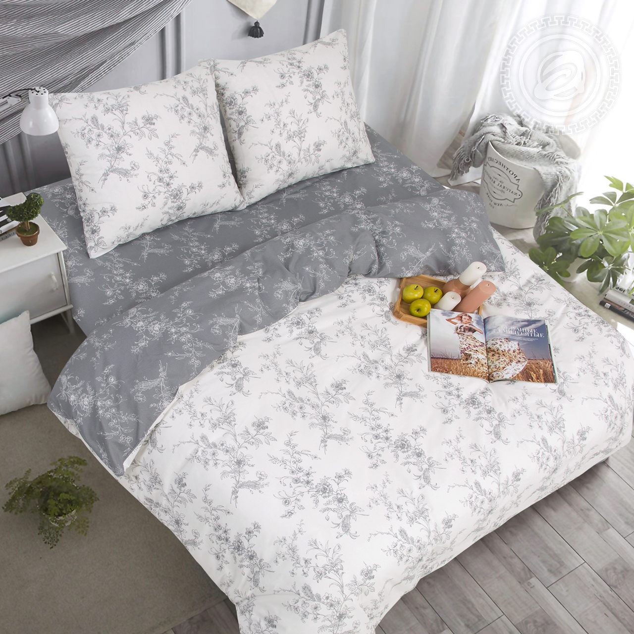 Постельное белье из натурального хлопка «Луара» станет чудесным дополнением спальни в стиле «прованс». Легкий и изящный цветочный принт выполнен в графике – черно-белой гамме с выразительной прорисовкой мельчайших деталей. На светлом фоне композиция с душистыми весенними букетами, напоминающими эскиз. Цветочный дизайн погружает в атмосферу романтики и мечтательности.