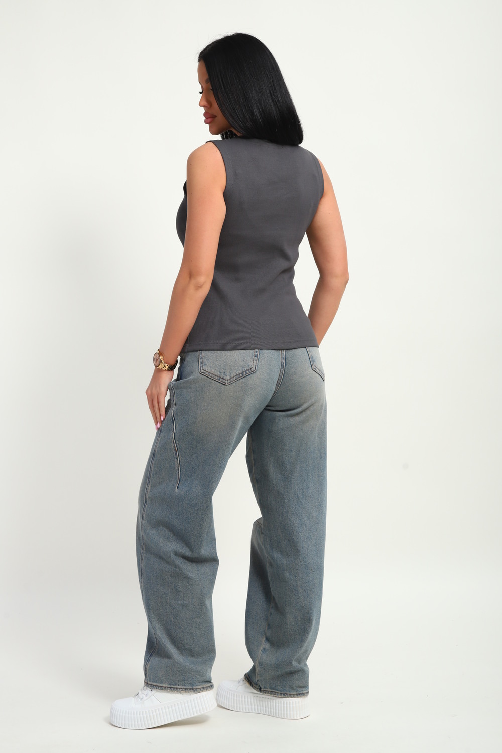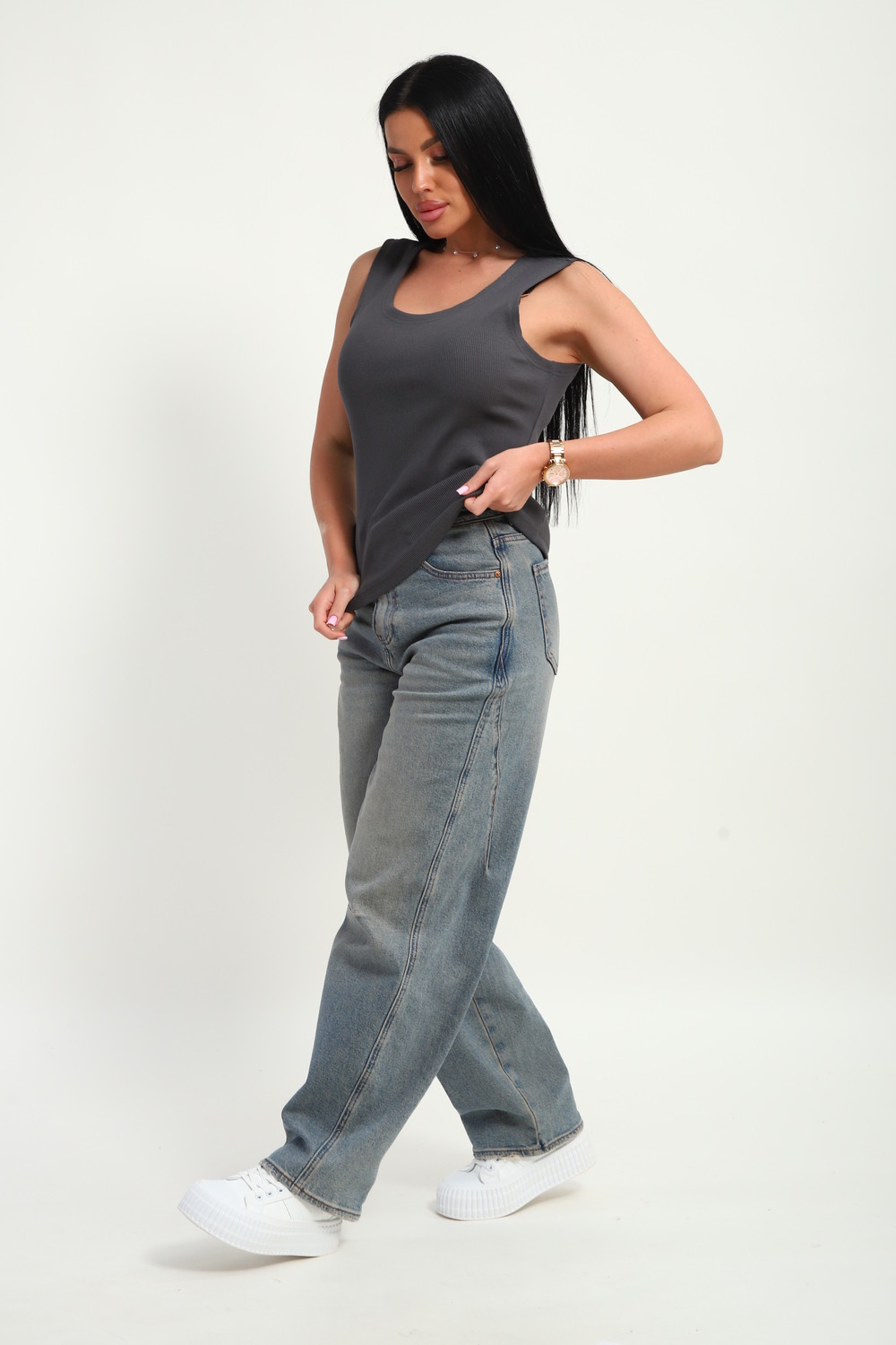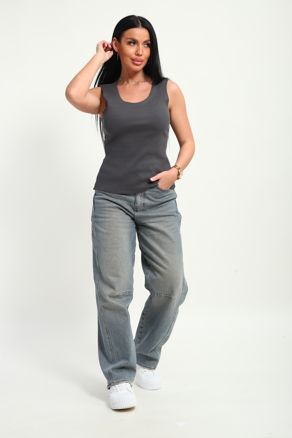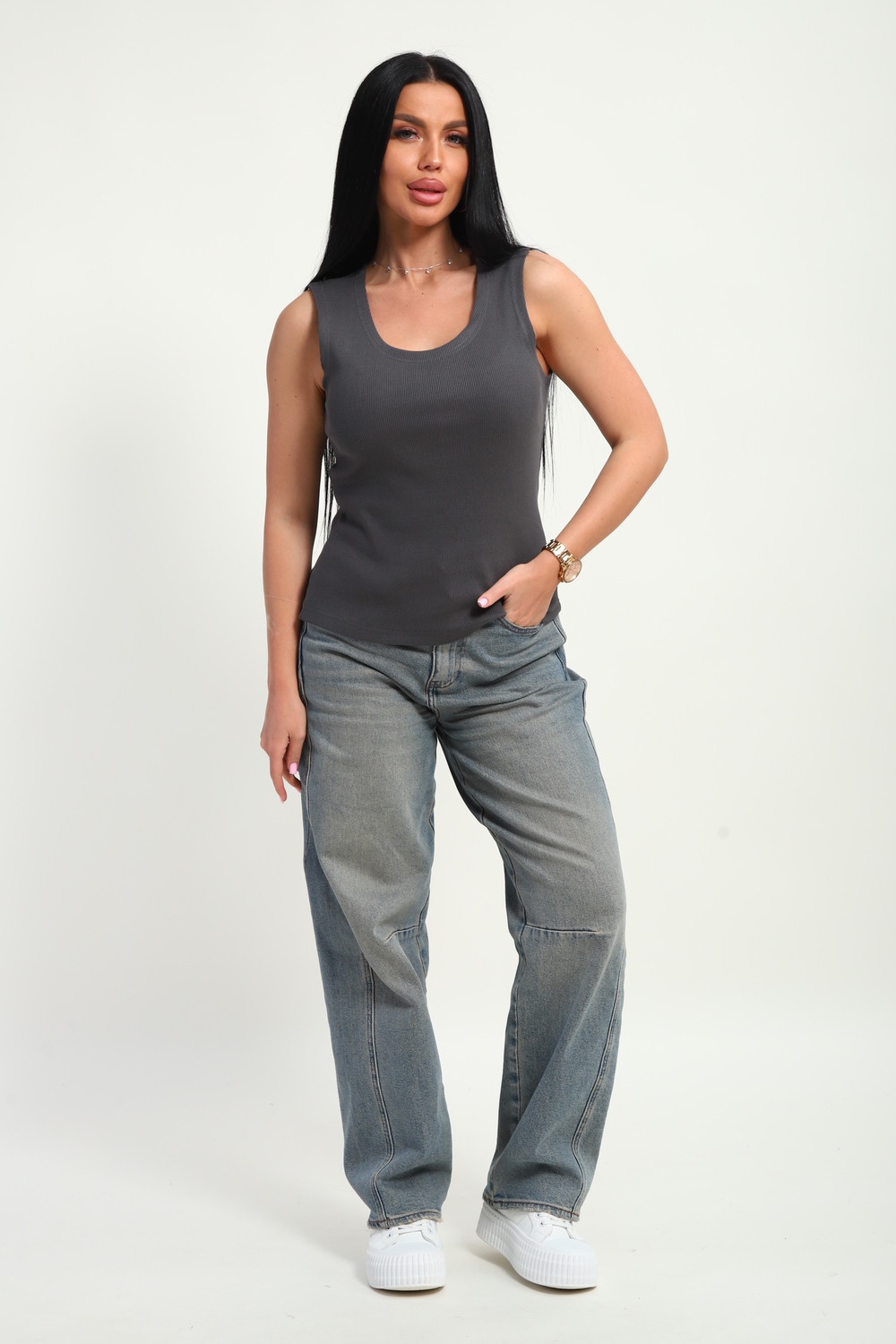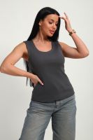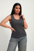 Трендовый топ, сшит из приятной к телу ткани. Материал кашкорсе с фактурой в рубчик, хорошо тянется и очень комфортна в носке. Эстетичная модель с круглым вырезом имеет качественный пошив и отлично держит форму.