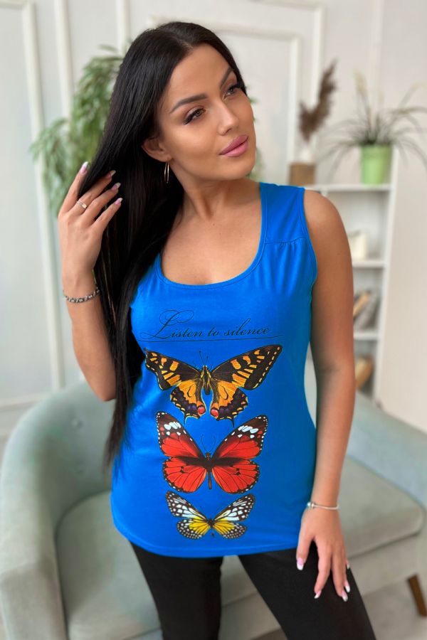 Майка женская с красивым принтом "бабочки" и перепадом длины