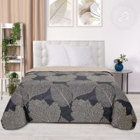 Покрывало защищает постельное белье от загрязнений, а также выполняет декоративную функцию, меняя облик комнаты в лучшую сторону. Снаружи изделия выполнены из материала, в основе которого лежит 100% хлопок. Натуральное волокно не вызывает аллергии и абсолютно безопасно для здоровья. К главным достоинствам бязи относят также высокую воздухопроницаемость и износостойкость. В качестве наполнителя используется полиэфирное волокно. Оно отличается легкостью и высокими теплоизоляционными характеристиками и хорошо сохраняет форму. Покрывало «Майрон» чудесно подойдет для обновления интерьера к сезону. Композиция выполнена в приглушенных тонах и украшена необычным орнаментом. Покрывало с листьями поможет создать в спальне уютную и сказочную атмосферу. Это модное дизайнерское решение для оформления дома.