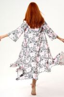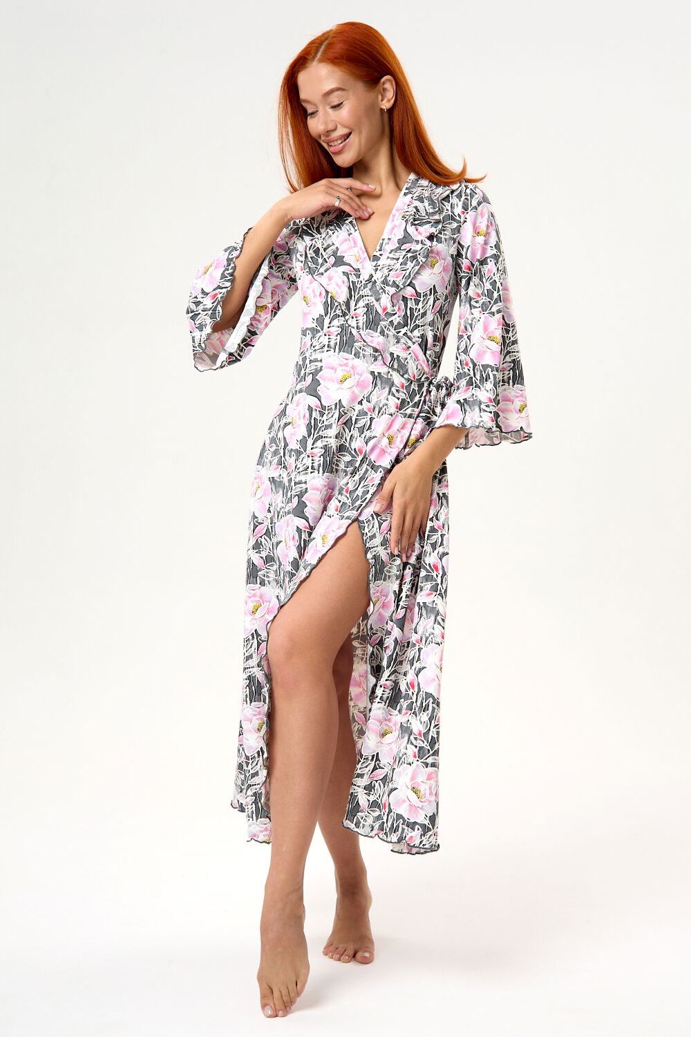 Халат домашний трикотажный женский - это отличное дополнение к вашей коллекции одежды для дома, созданной для тех, кто любит быть яркой и стильной, даже находясь в уютном уголке своего дома. Длинный халат с запахом имеет полуприлегающий силуэт, расклешенный к низу, длиной до середины икры. Линия талии завышена, что создает элегантный и изящный силуэт. На полочках, в области груди, расположены изящные воланы, которые добавляют изюминку к образу, подчеркивая женственность. Рукав в тачной, длиной 3/4, смотрится легко и элегантно, это делает его удобным в использовании. Подойдет как стройным женщинам, так и дамам с пышными формами. Идеально для подарка. Благодаря крою подойдет на маленькие и большие размеры, беременным и кормящим мамочкам. Возьмите халатик в роддом и будете самой элегантной мамочкой. Наш халат – это идеальный выбор для приятного времяпрепровождения в уютной обстановке. Сочетая в себе красоту и удобство, он идеально подходит для женщин, которые ценят качество во всем.