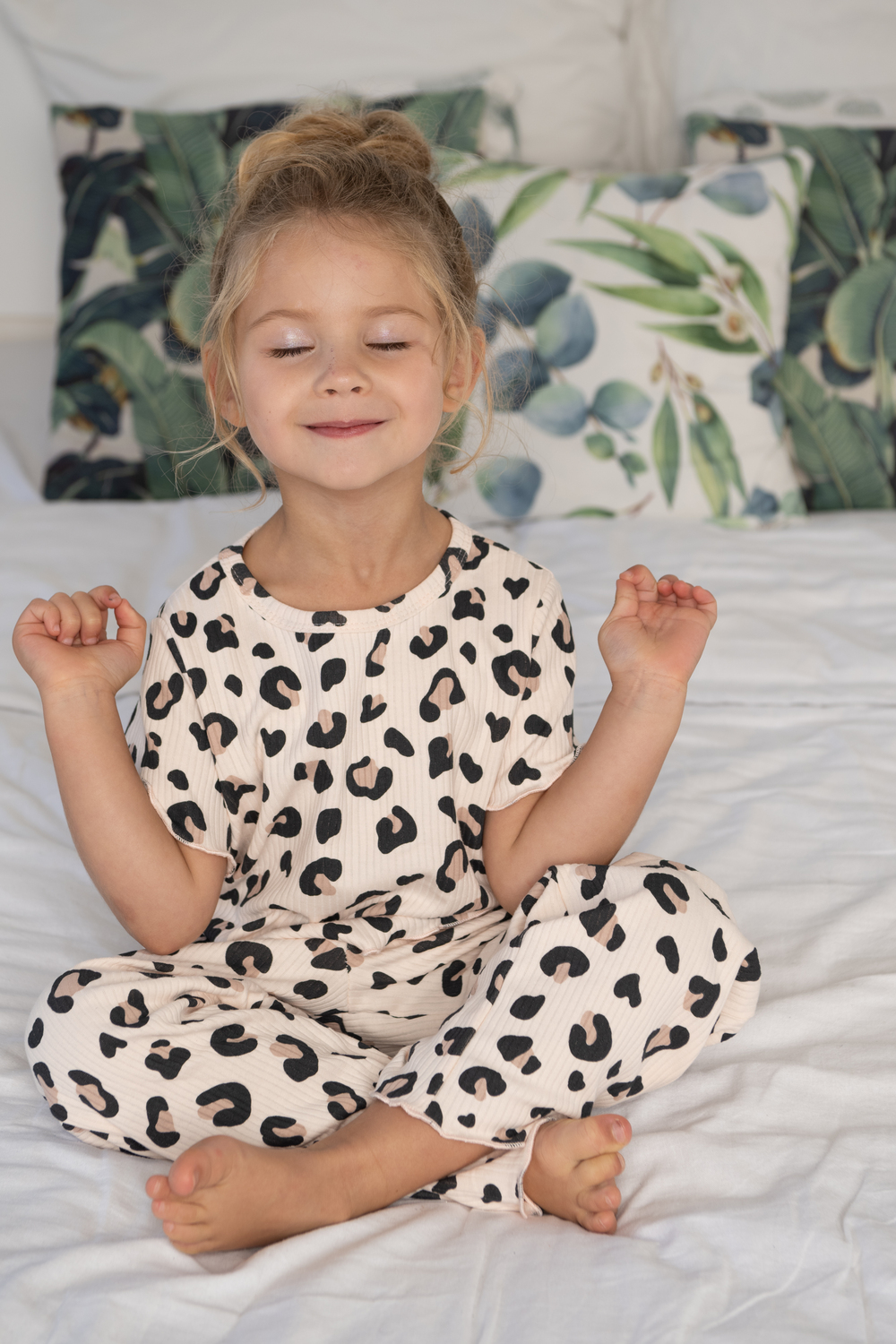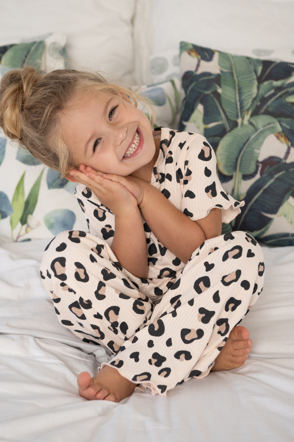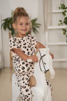 Детская пижама «Маркиза» выполнена из мягкого хлопкового трикотажа с трендовым леопардовым принтом. Лёгкая, приятная к телу ткань дарит комфорт и свободу движений. Укороченные рукава и свободные брюки обеспечивают удобство и уют во время сна.