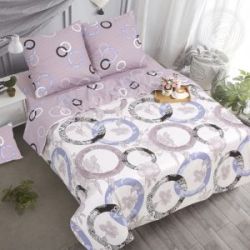 Кремовый фон рисунка «Мелодия» не плотно заполнен крупными кольцами, каждое из которых отличается собственным орнаментом. В дизайне колец используются три основных цвета – черный, бледно-васильковый и темно-коралловый. Соответственно принты на поверхности колец решены в белом цвете или более светлых оттенках основных цветов. Композицию дополняют декоративные бутоны в стиле «модерн» приглушенного пастельно-розового цвета