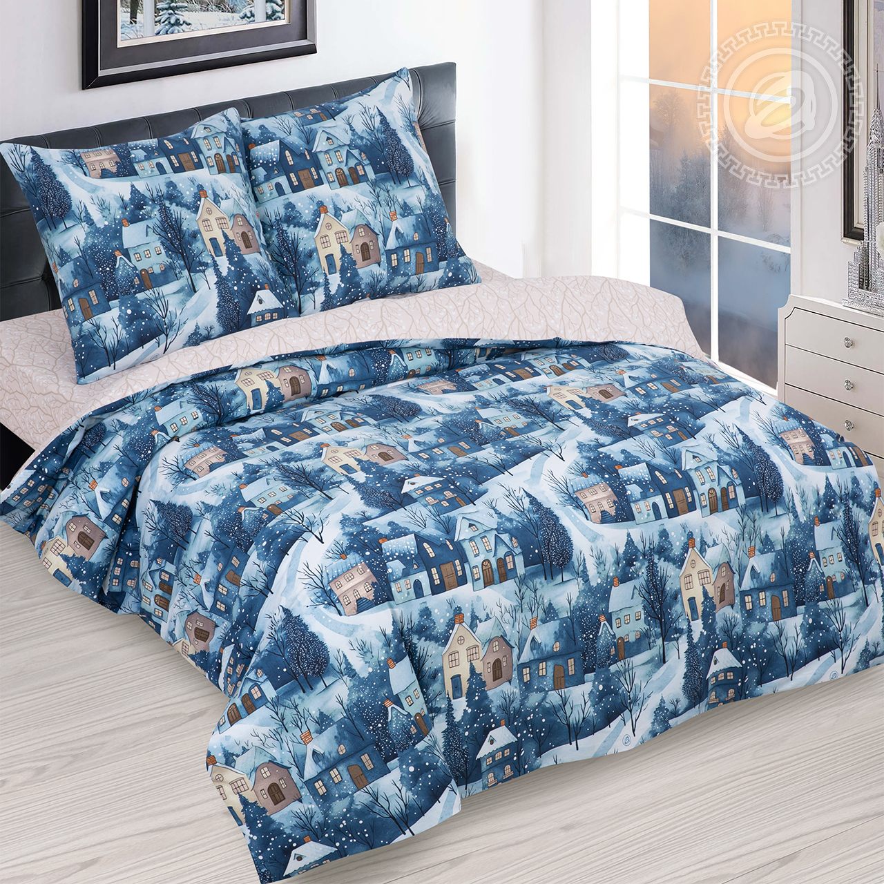 Вы любите Новый год? Ждете волшебный праздник? Выбираете подарки для всей семьи? Тогда для Вас новогоднее постельное белье «Метелица». Это комплект из поплина с очень интересным и уютным дизайном. Он погружает нас в атмосферу зимнего торжества. Новогодний принт представляет собой городской пейзаж с маленькими и старинными улочками, большими сугробами и ёлочками. Это отличный подарок на Новый год, который дарит сказочное настроение.