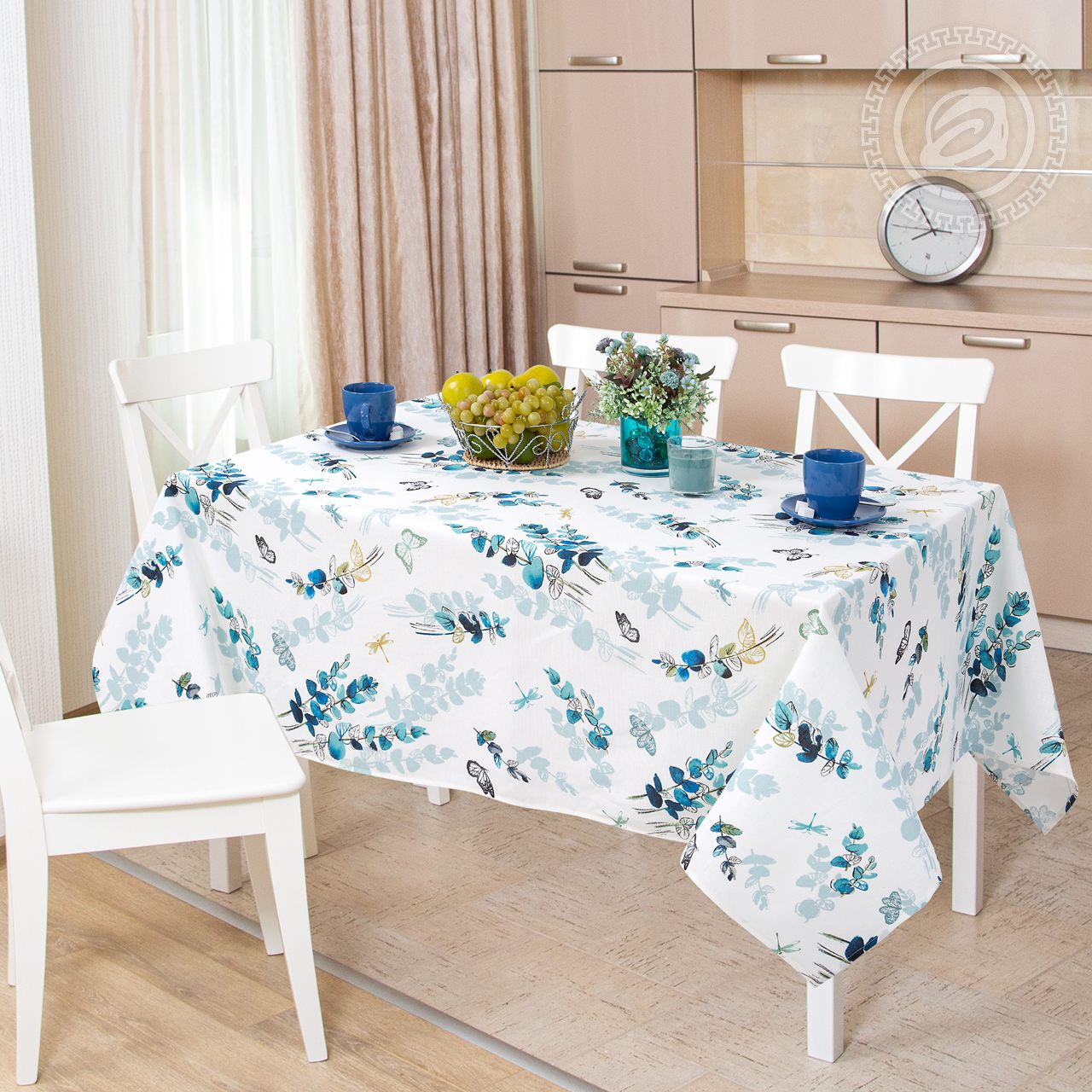 Такой нежный акварельный рисунок «Мирт»! Этот свежий весенний дизайн выполнен на ткани-рогожке. Изделия для кухни из рогожки долговечны и надежны, практичны, хорошо переносят множество стирок и продолжают служить хозяйке верой и правдой. Для единства стиля на кухне можно сочетать скатерть и полотенца из рогожки нового дизайна «Мирт» - приносящего тишину, спокойствие и расслабление. Акварельные бледно-голубые росчерки стеблей мирта сочетаются с шорохом крыльев бабочек и шуршанием стрекоз – непреодолимое впечатление знойного дня и дуновения ароматных трав.