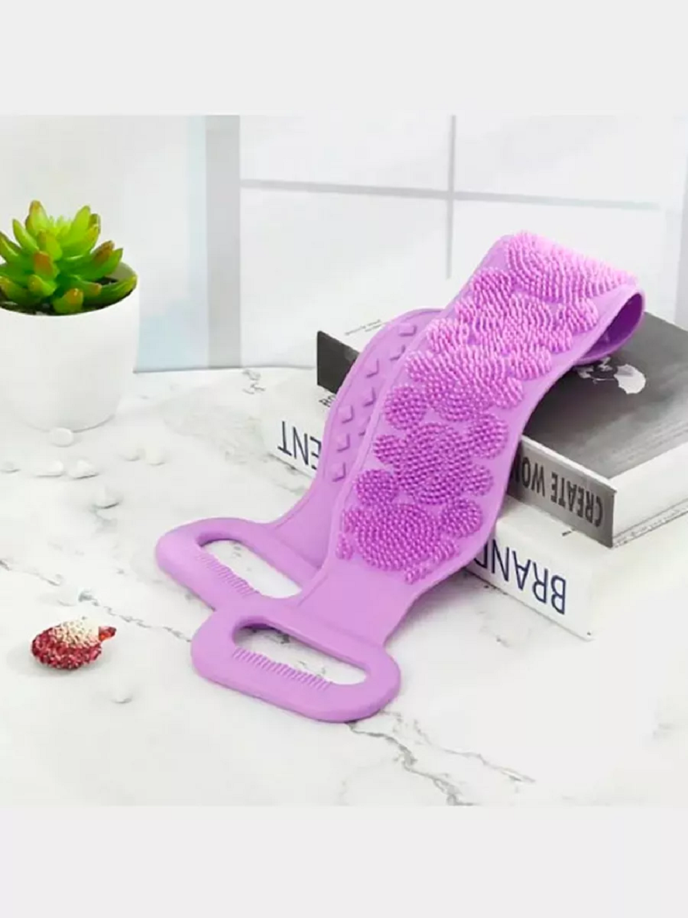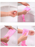 Мочалка женская массажная – незаменимый атрибут для душа или ванны. Это уникальное изделие, сделанное из мягкого и качественного силикона, которое бережно очищает кожу и не вызывает повреждений или раздражений на теле. Имеет особое рельефное исполнение, обладающее скрабирующие действия и антицеллюлитным эффектом. Мягкие зубчики отшелушивают ороговевшие клетки, активизируя циркуляцию крови и обновление эпидермиса. Ваши поры будут чистые, а кожный покров станет гладким и здоровым. Идеальный вариант для всей семьи. Длинная ручка обеспечивает удобство использования, позволяя легко дотягиваться до спины и других труднодоступных мест. Прекрасно подходит для умывания, пилинга и сушки кожи после мытья. Это износостойкое и долговечное изделие создано из материала, который не содержит вредных веществ и абсолютно термостойкий. Вы можете использовать ее даже в бане или сауне, а также применять ее на лице вместо скраба и маски. Не важно, мужчина Вы или женщина, дети или взрослые – это универсальный аксессуар, который подойдет каждому. Она позволит Вам насладиться полезной гигиеной. Кроме того, ею может использоваться для удаления шкуродера, что делает ее еще более практичной и удобной.