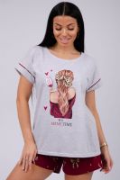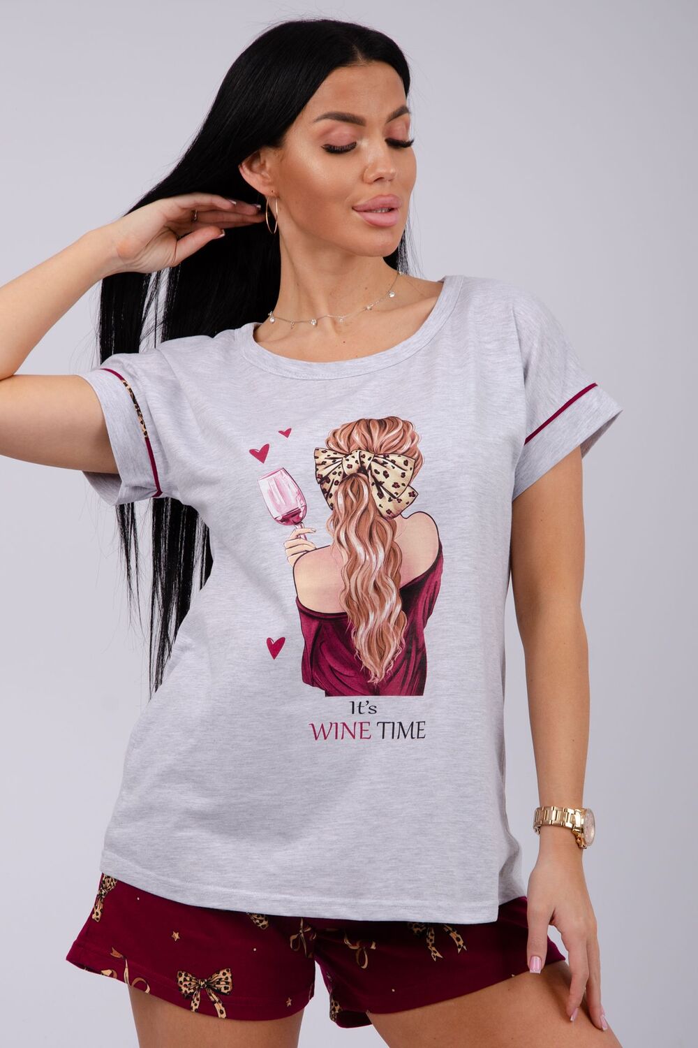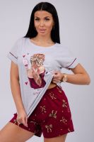 Пижама женская состоит из футболки с коротким рукавом и шортов. Футболка из однотонной кулирки с красивым принтом.