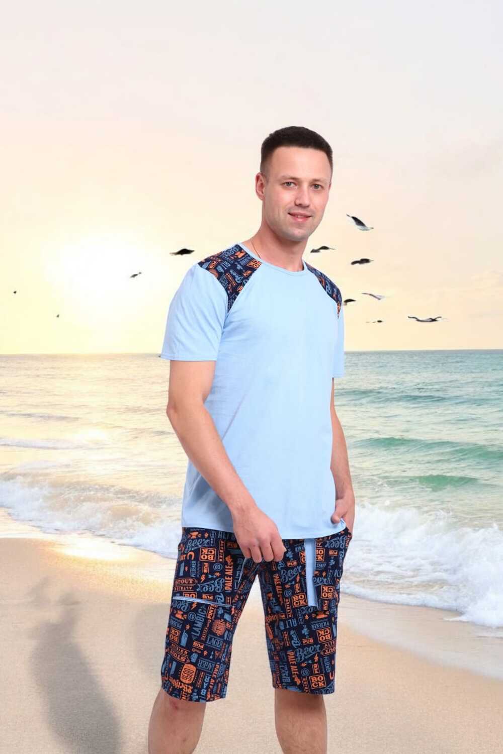 Погрузись в атмосферу свободы и летнего беззаботного отдыха с этим стильным мужским костюмом! Легкая футболка нежно-голубого цвета с оригинальными контрастными вставками на плечах — это не просто одежда, а настроение.Костюм идеально подойдёт для отдыха на пляже, летней вечеринки или просто уютного дня дома. Свободный крой, приятная к телу ткань и яркий дизайн делают его настоящим must-have сезона.Выразительный дизайн, который притягивает взгляды, мягкий трикотаж, дарящий комфорт с утра до вечера, универсальность — для дома, дачи, моря или прогулки, карманы в шортах для практичности, отлично сочетается с пляжными сандалиями или кедами. Хочешь — носи дома, хочешь — отправляйся в нём на пляж, но главное — носи с удовольствием!