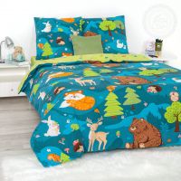 Детское постельное белье с изображением лесных героев станет ярким акцентом в интерьере. Перед нами волшебный лес с очаровательными персонажами. В окружении ёлочек, на цветочных полянках, живут медвежата, белочки, лисички, ёжики и многие другие. Наши лесные друзья не оставят равнодушными детей, малышей и родителей. Комплект из натуральной бязи обеспечит комфорт, а красочный дизайн подарит радость.