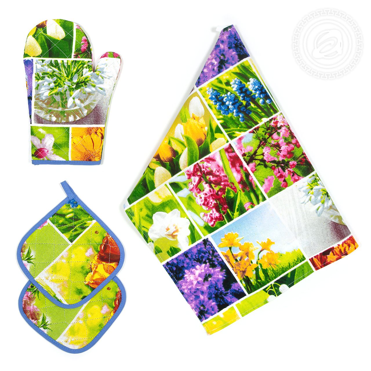 Полотенце: 1 шт. - 45*60; Варежка-прихватка: 1 шт. - 29*18; Прихватка стеганая: 2 шт. - 18*18;
