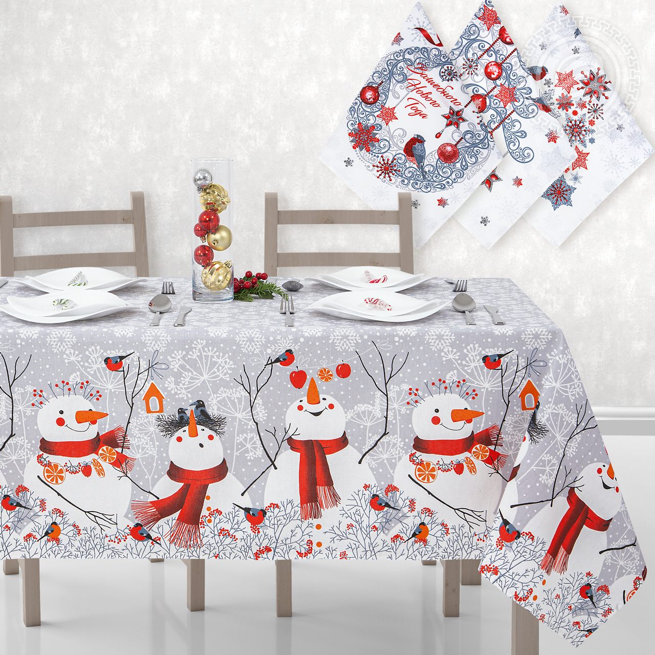 В набор входят: скатерть (1 шт) и полотенца, размер 45*60 см (3 шт) Новый год – время волшебства и сказки. И это ощущение праздника великолепно отражено в чудесном подарочном наборе. На рогожке милый и забавный рисунок с веселыми снеговиками в красных шарфиках, пушистыми снежинками и снегирями. Дизайн выполнен в нежной цветовой гамме и дополнен причудливыми узорами из веточек рябины и долек апельсина. Набор из рогожки «Снеговики» – красивый подарок на Новый год, который принесет атмосферу радости и тепла.