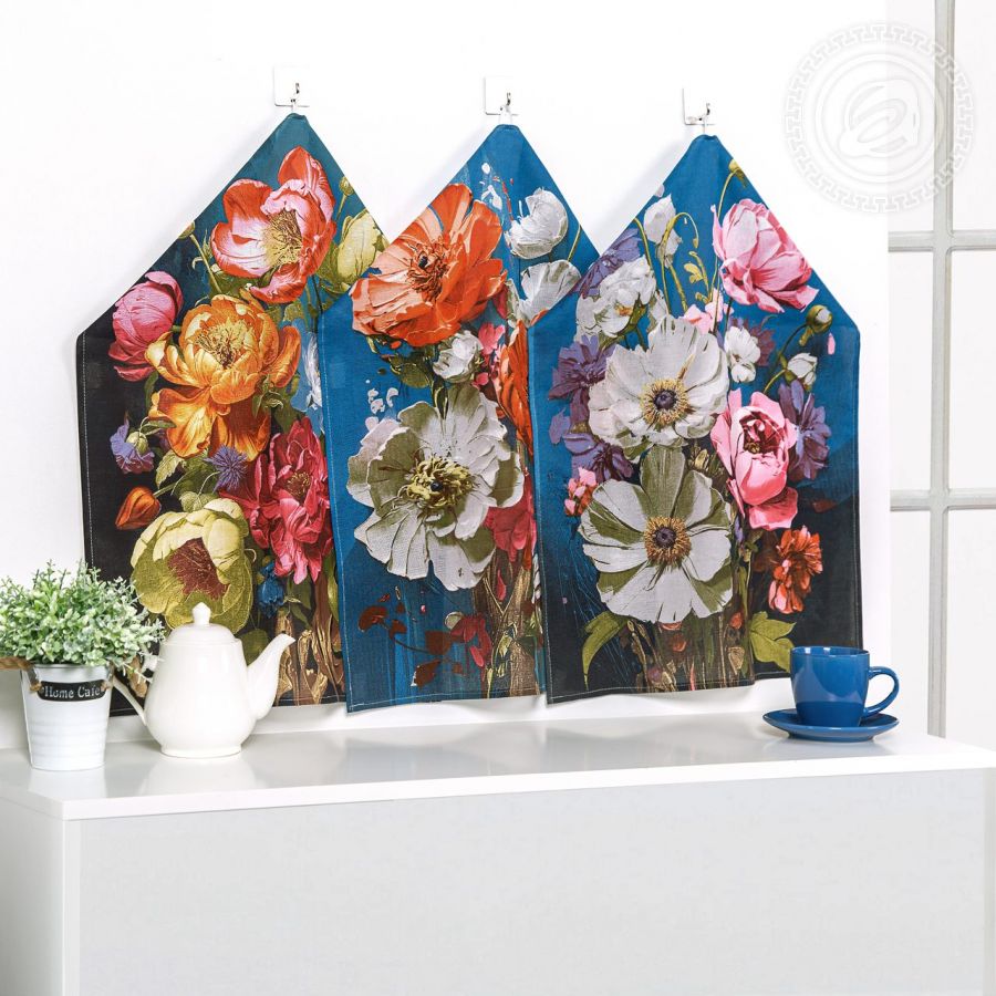 «Цветалина» – весенняя сказка, которая украсит вашу кухню. Полотенца из рогожки дополнены необычным авторским дизайном с россыпью цветов. На ткани детально прорисованы нежные пионы и яркие маки – образ богатства, благополучия и жизненной силы. Картина напоминает живописный сад с его невероятными красками и сладкими ароматами. Кухонные полотенца из хлопка украсят интерьер и станут приятным подарком к любому празднику.