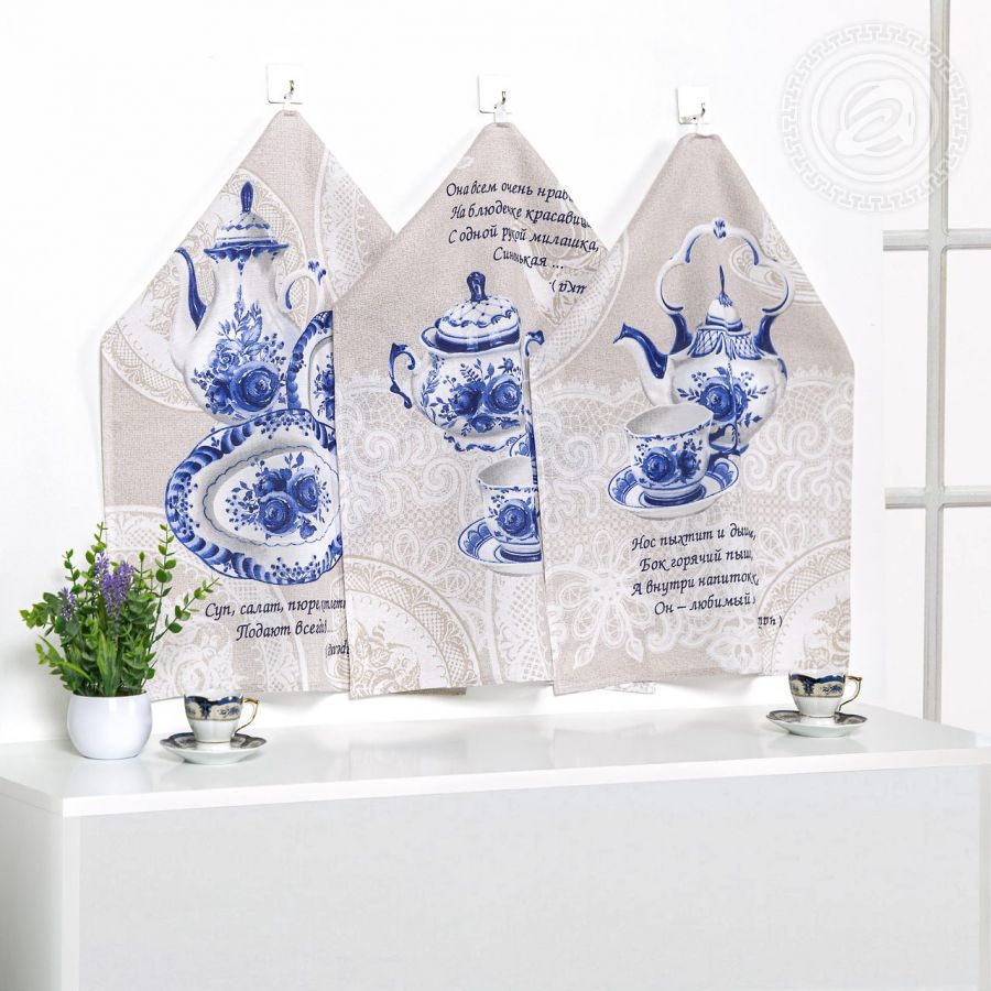 С учетом особенностей рисунка комплектация наборов может быть разной (микс).Набор полотенец рогожка «Мамин чайник» – приятный сюрприз к любому празднику. Полотенца выполнены из 100% хлопка, хорошо впитывают влагу и быстро сохнут. А рисунок в виде чайного сервиза добавляет изделиям стиля и элегантности. В центре композиции – чашечки, чайник, тарелки – и загадки по данной тематике. Полотенца из рогожки с нежным принтом создают настроение.