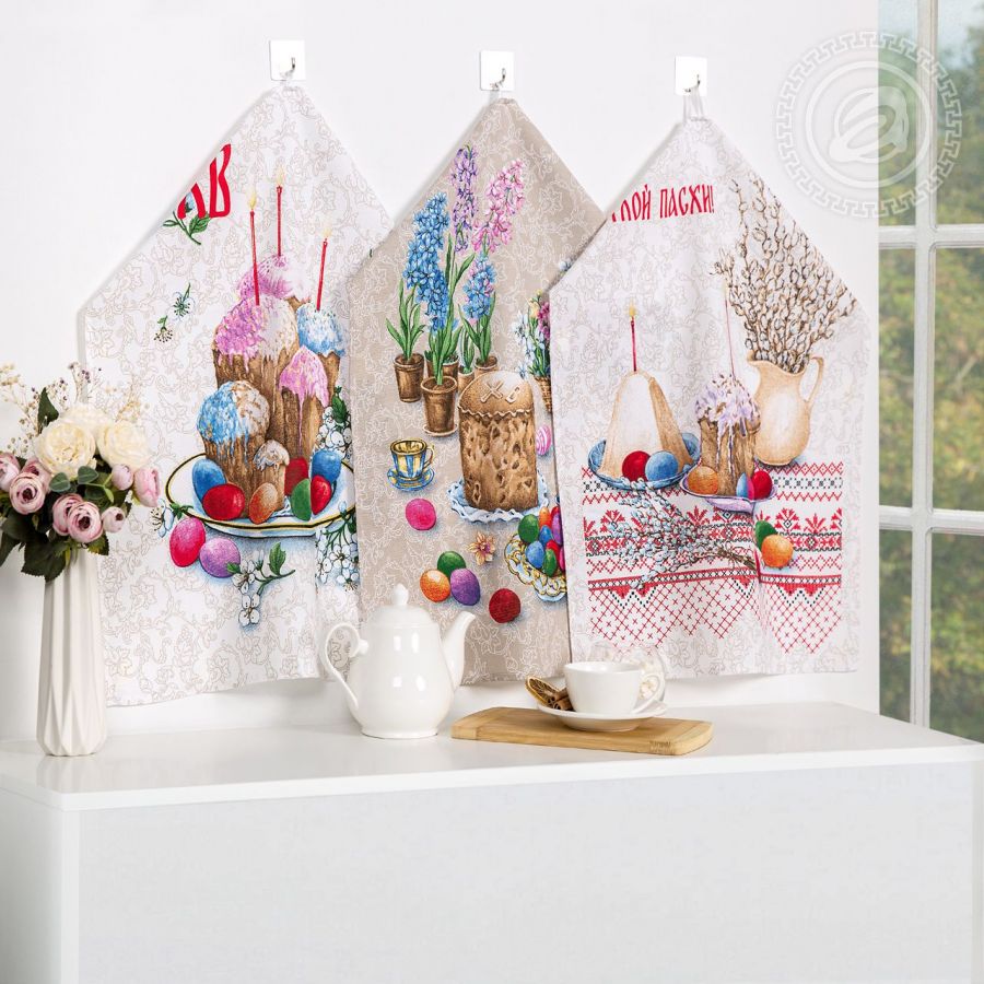 Кухонные полотенца «Пасха» из рогожки украсят светлый весенний праздник. Они выполнены в пастельной гамме оттенков и дополнены легкой и очаровательной композицией с пасхальными мотивами. Изящные пташки, мягкие узоры, веточки вербы создают атмосферу весеннего тепла и уюта. Это подарок к Светлой Пасхе, который подарит чувство радости и умиротворения.