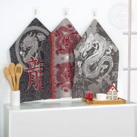 С учетом особенностей рисунка комплектация наборов может быть разной (микс). Кухонные полотенца из рогожки «Путь богатства» украшены модным принтом в азиатской стилистике. Уникальный дизайн выполнен в традиционных цветах и дополнен иероглифами. А на первом плане главный символ древней культуры – дракон в окружении бамбука и цветов, который будто появился из старинных мифов и легенд. «Путь богатства» – оригинальный дизайн, который добавит в облик кухни нотки самобытности и колорита.