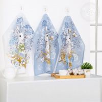 Полотенца из рогожки «Роджер» в нежной цветовой палитре дополнены очаровательным и милым дизайном с самыми пушистыми и обаятельными зайчишками на фоне хлопка и одуванчиков. Рисунок выглядит воздушно, изящно, атмосферно. Изделия из 100% хлопка с символом 2023 станут приятным новогодним сюрпризом.