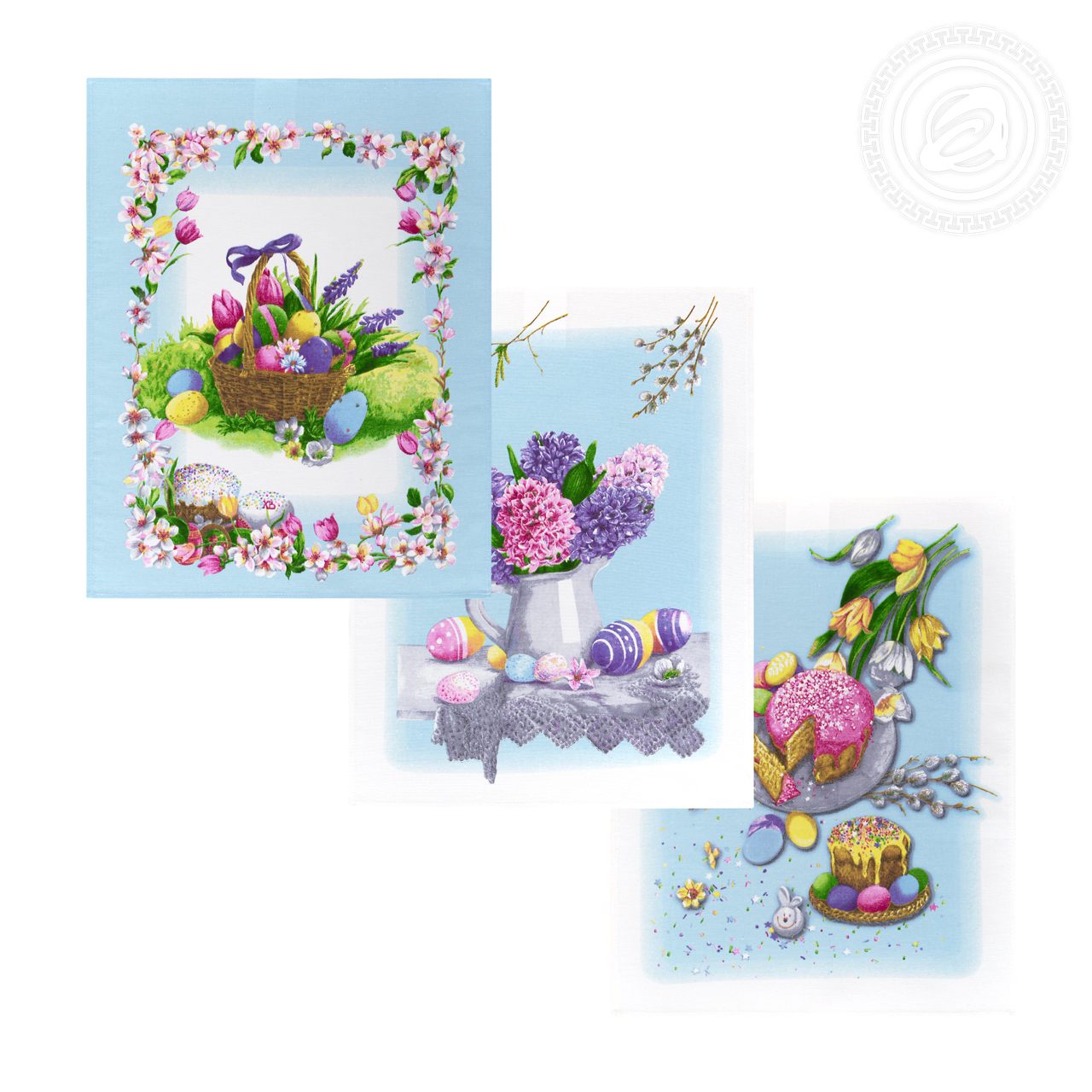 С учетом особенностей рисунка комплектация наборов может быть разной (микс). Изделия из ткани рогожка «Светлый день» украшены тематическим пасхальным декором. Разноцветные куличи, яички в корзинах с бантиками, веточки вербы, - композиция выглядит уютно и празднично. Помимо традиционных угощений на рисунке много весенних цветов. «Светлый день» - чудесный подарок к празднику Пасха.