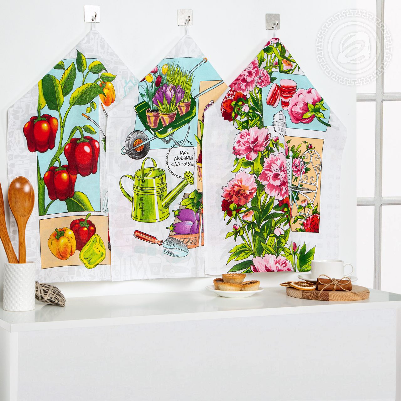С учетом особенностей рисунка комплектация наборов может быть разной (микс). «Удачный сезон» – полотенца для дома и дачи из рогожки. Они напоминают о лете и дарят море эмоций. Только взгляните на уникальный рисунок! Он наполнен яркими красками и всеми атрибутами дачного сезона. Овощные грядки, резиновые сапоги, лейка и клумбы с цветами, – снова хочется вернуться в летний сад и насладиться этой солнечной сказкой! Кухонные полотенца из хлопка «Удачный сезон» станут практичным и приятным подарком для каждого дачника.