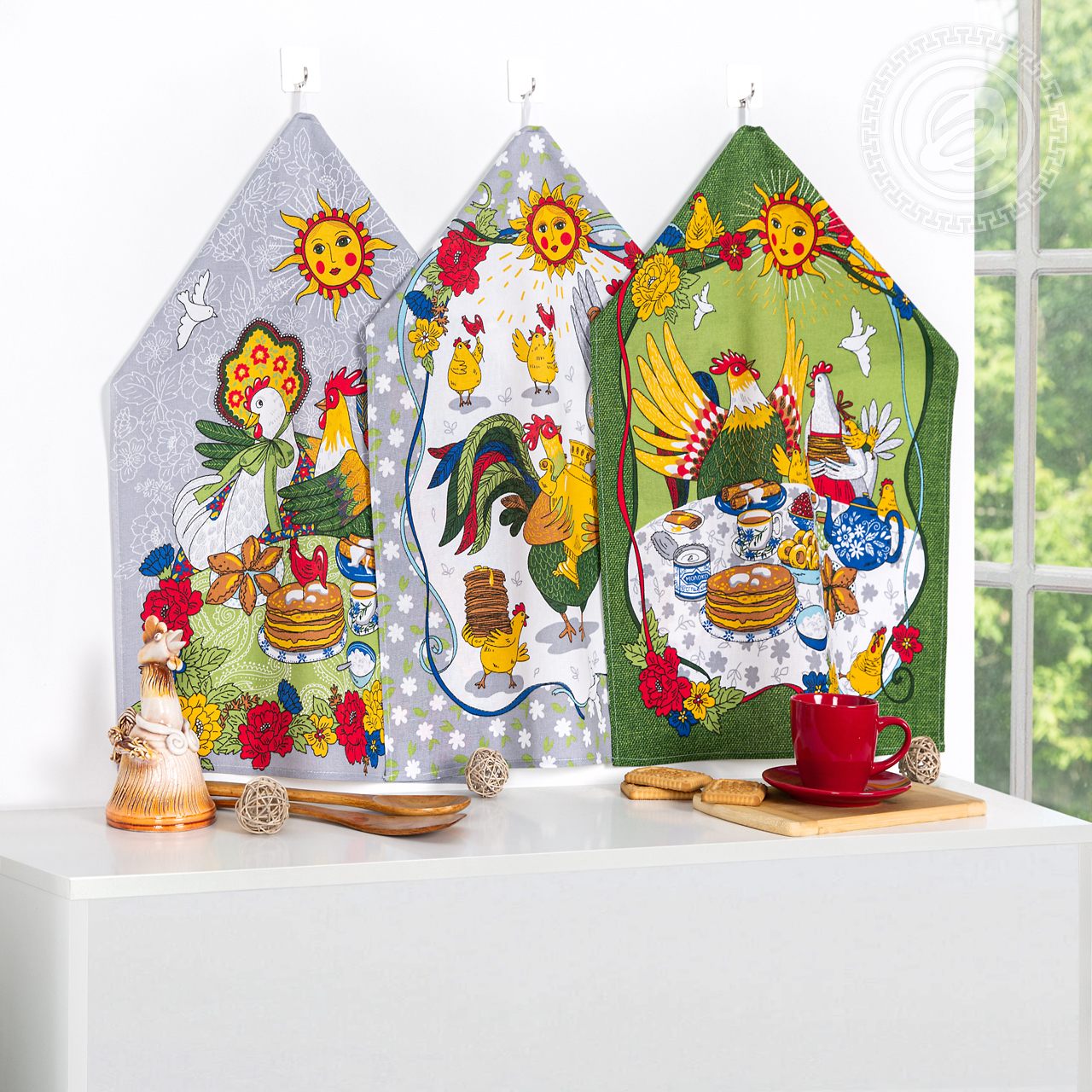 Полотенца из рогожки с изображением петушков и курочек, празднующих Масленицу, – яркий акцент на любой кухне. Русские мотивы, сочные краски, забавные персонажи – такой текстиль понравится каждому и станет приятным сюрпризом для любителей народного искусства. На полотенцах из рогожки изображены веселые сценки с участием петушка, курочки и цыплят. А обрамляют эти зарисовки любимые нами элементы: яркие цветы, вкусные блины и пироги, пузатый самовар и аппетитные баранки. Каждая деталь пропитана атмосферой праздника. «Угощение» – дизайн, созданный для тех, кто хочет внести немного тепла и радости в повседневную жизнь!