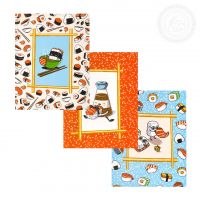 Если вы любите японские деликатесы, то набор полотенец из рогожки «Васаби» точно для Вас. На разноцветных изделиях оригинальные мотивы в виде суши, пиал с соевым соусом и палочек. Фоновый рисунок в оранжевой и голубой гамме дополнен забавными летними зарисовками с роллами в главных ролях. Наши герои из риса нежатся в ванной из соуса, отдыхают на шезлонгах из лосося и прекрасно проводят время. «Васаби» — это модный и актуальный дизайн для современной кухни.