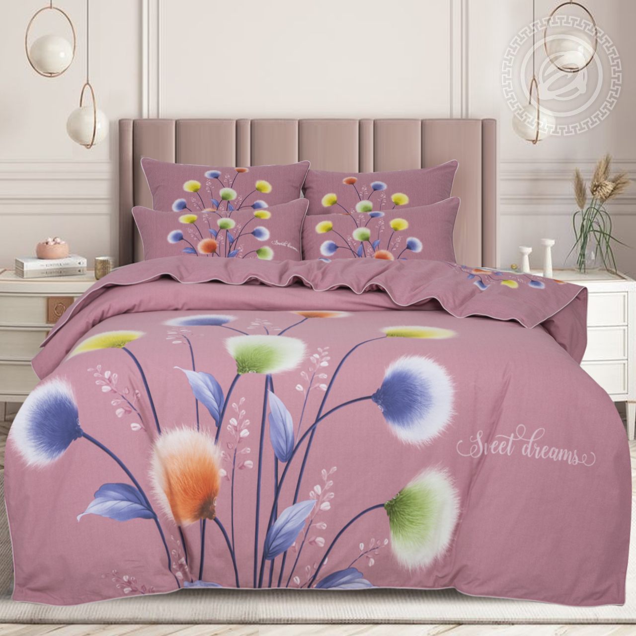 «Нинель» - постельное белье велюр в нежной гамме с необычным цветочным рисунком в технике «монораппорт». Элитный комплект с эксклюзивным дизайном подарит сказочные сны и чудесное настроение. Швы пододеяльника и наволочек отделаны изысканным узким кантом в цвет основного тона ткани. Приятно радует разнообразие дизайнов и расцветок. Постельное белье коллекции «велюр» без преувеличения украсит интерьер любой спальни. Комплекты отлично смотрятся и незаметно вносят гармонию в семейный быт. Это прекрасное решение для создания по-настоящему уютной и легкой атмосферы для отдыха. Линейная плотность: Основа: 133 нитей/дюйм Уток: 72 нитей/дюйм