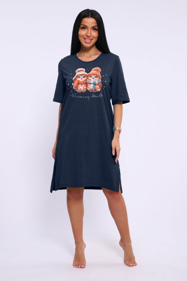Туника из хлопка свободного силуэта с втачным рукавом и разрезами по бокам. На полочке декоративная, глянцевая печать в стиле шелкографии.