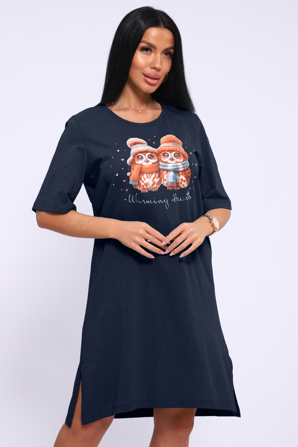Туника из хлопка свободного силуэта с втачным рукавом и разрезами по бокам. На полочке декоративная, глянцевая печать в стиле шелкографии.