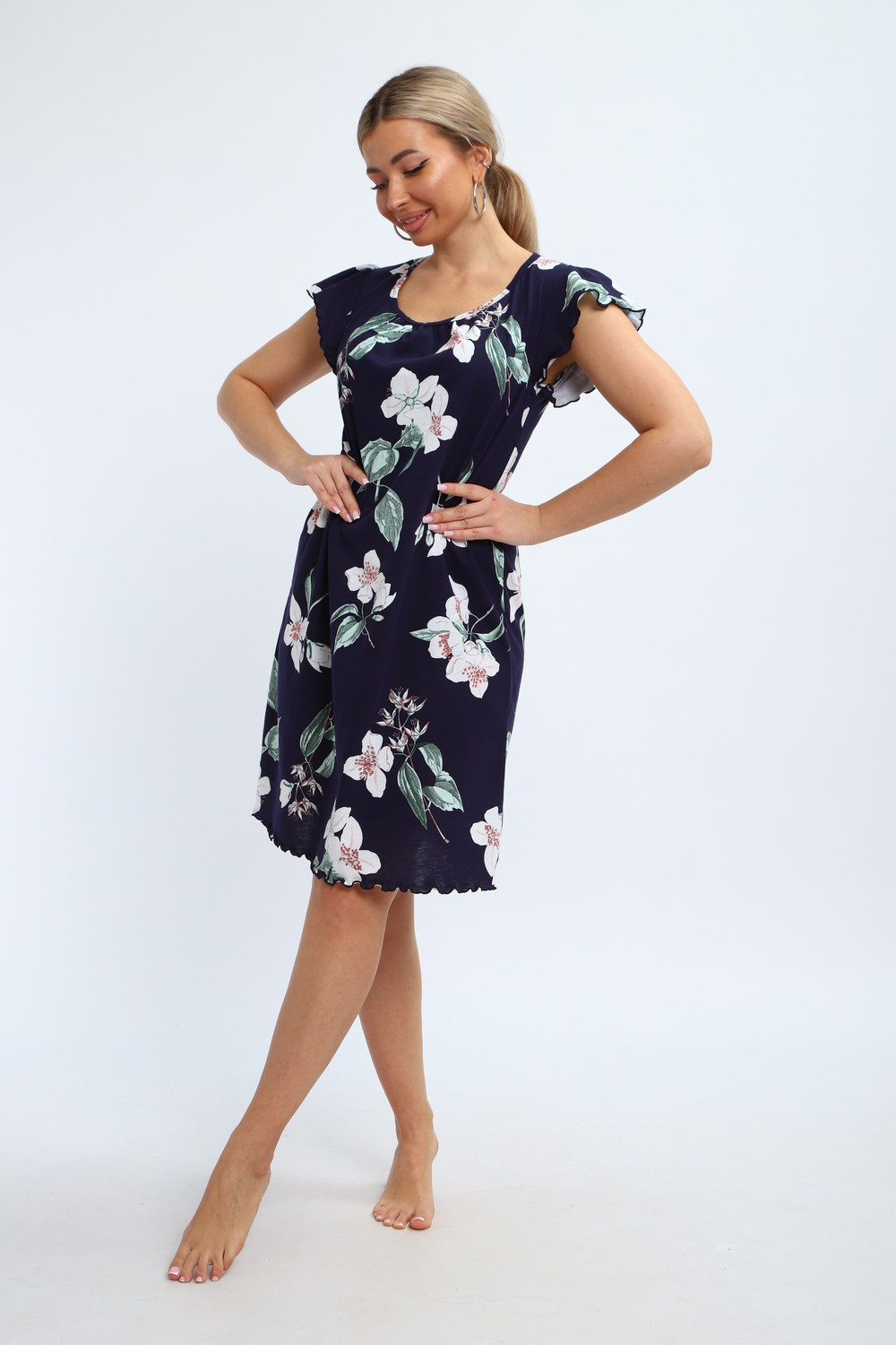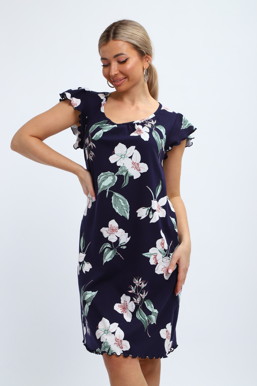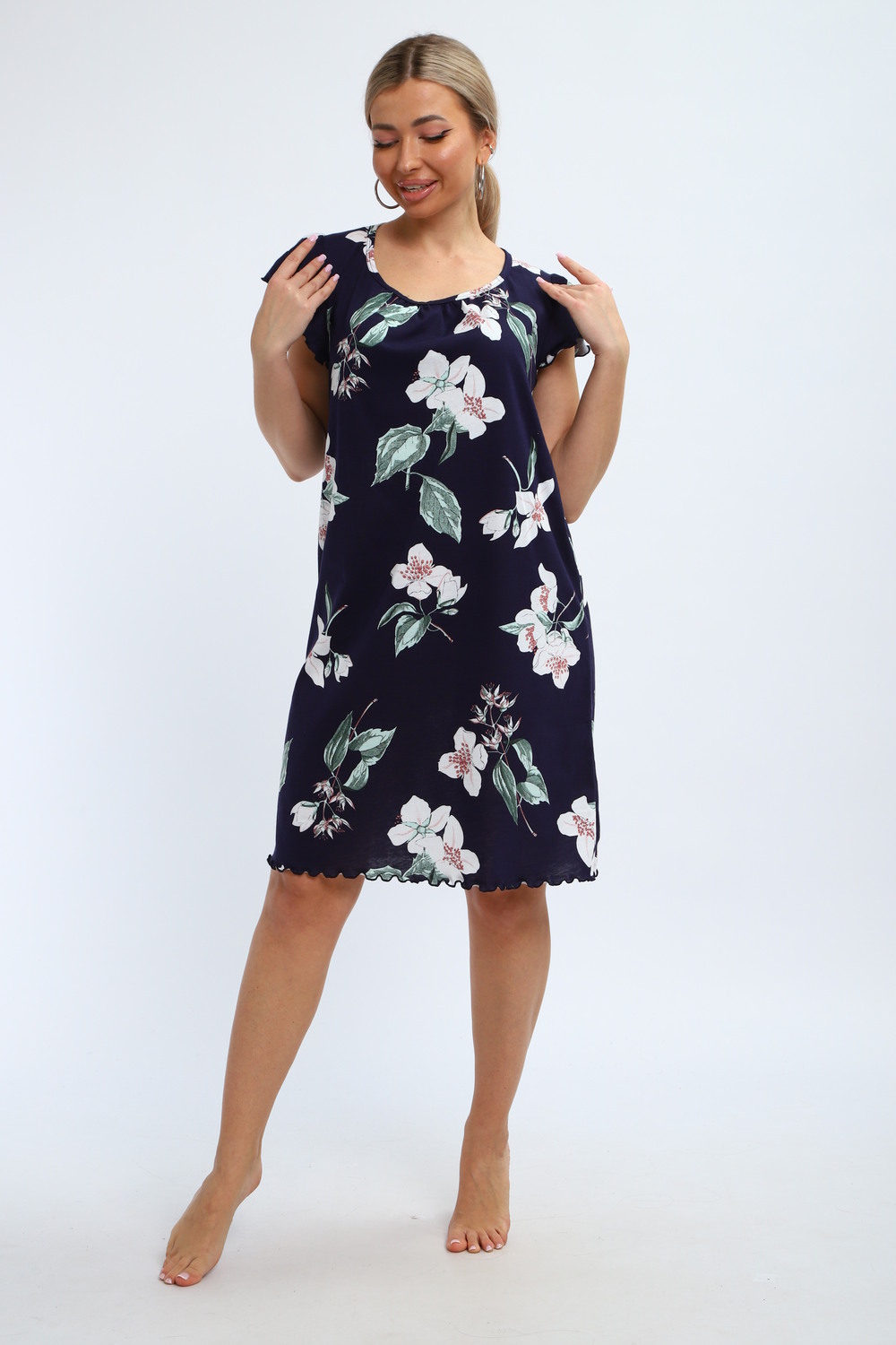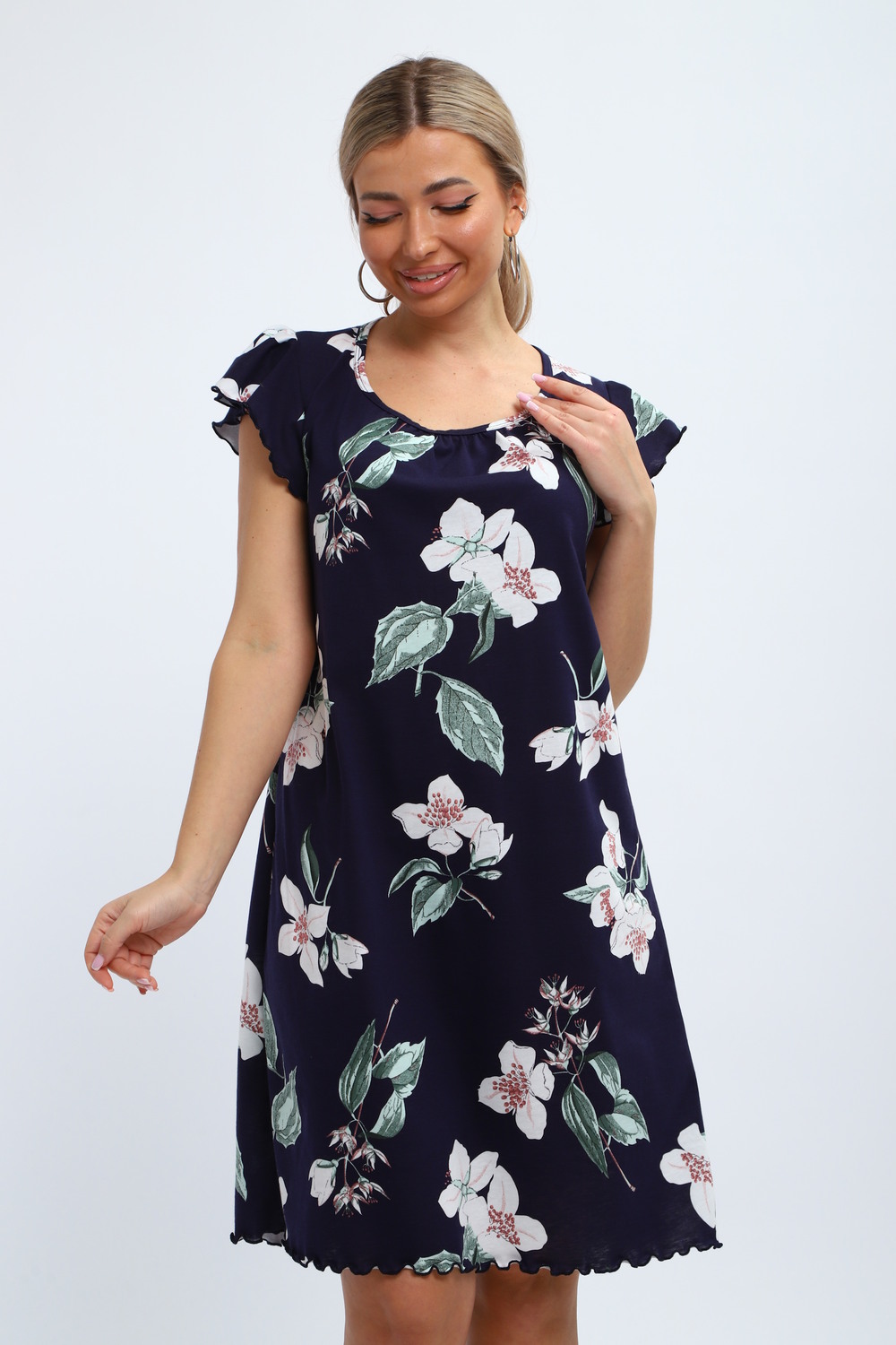 Милая и нежная хлопковая ночная сорочка женская от бренда "ИвановоТекстиль". Ночнушка свободного кроя, прекрасно сидит, обеспечивает легкость и непринужденность в движении. Изготовлена из 100% натурального хлопка, ткань мягкая, дышащая и приятная к телу. Легкая рубашка пижамная с коротким рукавом и овальным вырезом горловины. Длина изделия - до колен, очень красиво и выгодно смотрится. Рукава изящно отделаны. Послужит чудным и комфортным домашним платьем для сна, наполнит ваши будни очарованием. Выполнена в голубом тоне, имеет волшебный, нежный принт. Одинаково удобно, легко и непринужденно в нем ощутят себя как подростки, так и взрослые женщины. Особенно хорошо подойдут они для беременных и для будущих мам, а так же послужит отличным вариантом как одежда для полных. Волшебный подарок маме, бабушке, тете, сестре, подруге, дочери на день рождения, именины! Домашняя и повседневная одежда — это прекрасный выбор для подарка на такие замечательные праздники, как 8 марта или 14 февраля. Независимо от того, планируете ли вы порадовать бабушку, маму, дочь или подругу, наша продукция станет символом заботы и внимания к вашим близким. Подарив им такую одежду, вы не только проявите своё отношение, но и подарите комфорт и тепло, которые они смогут ощущать каждый день.