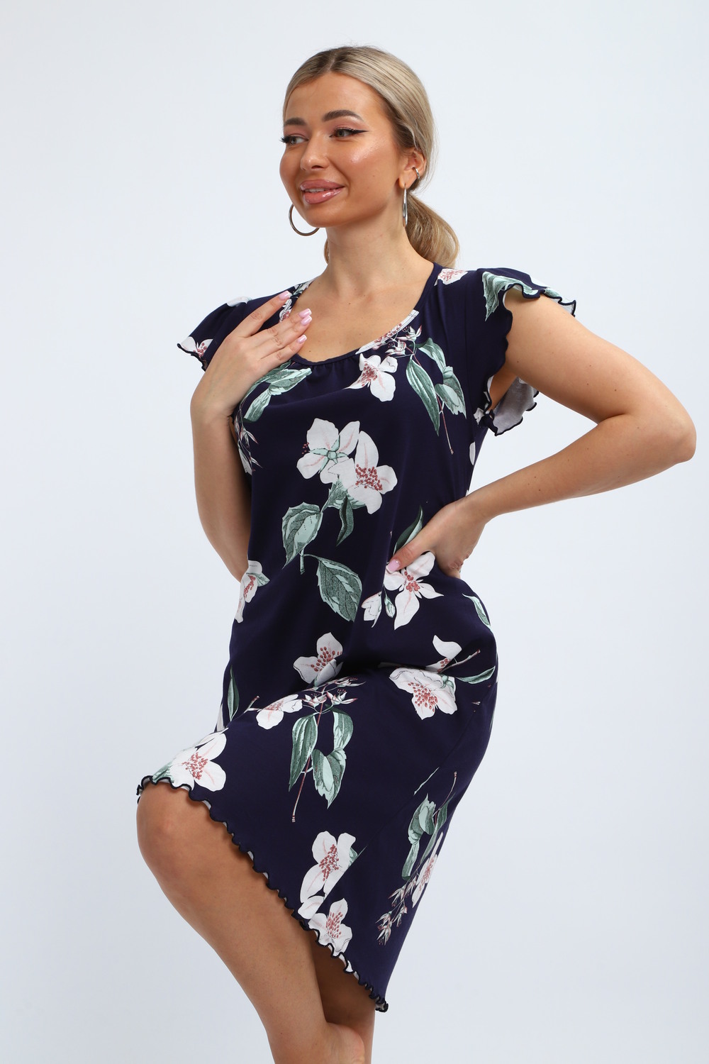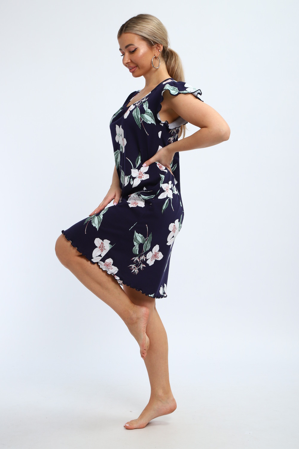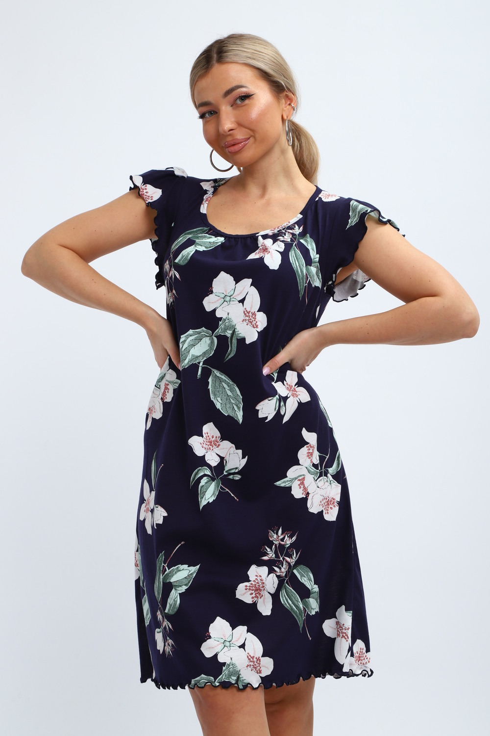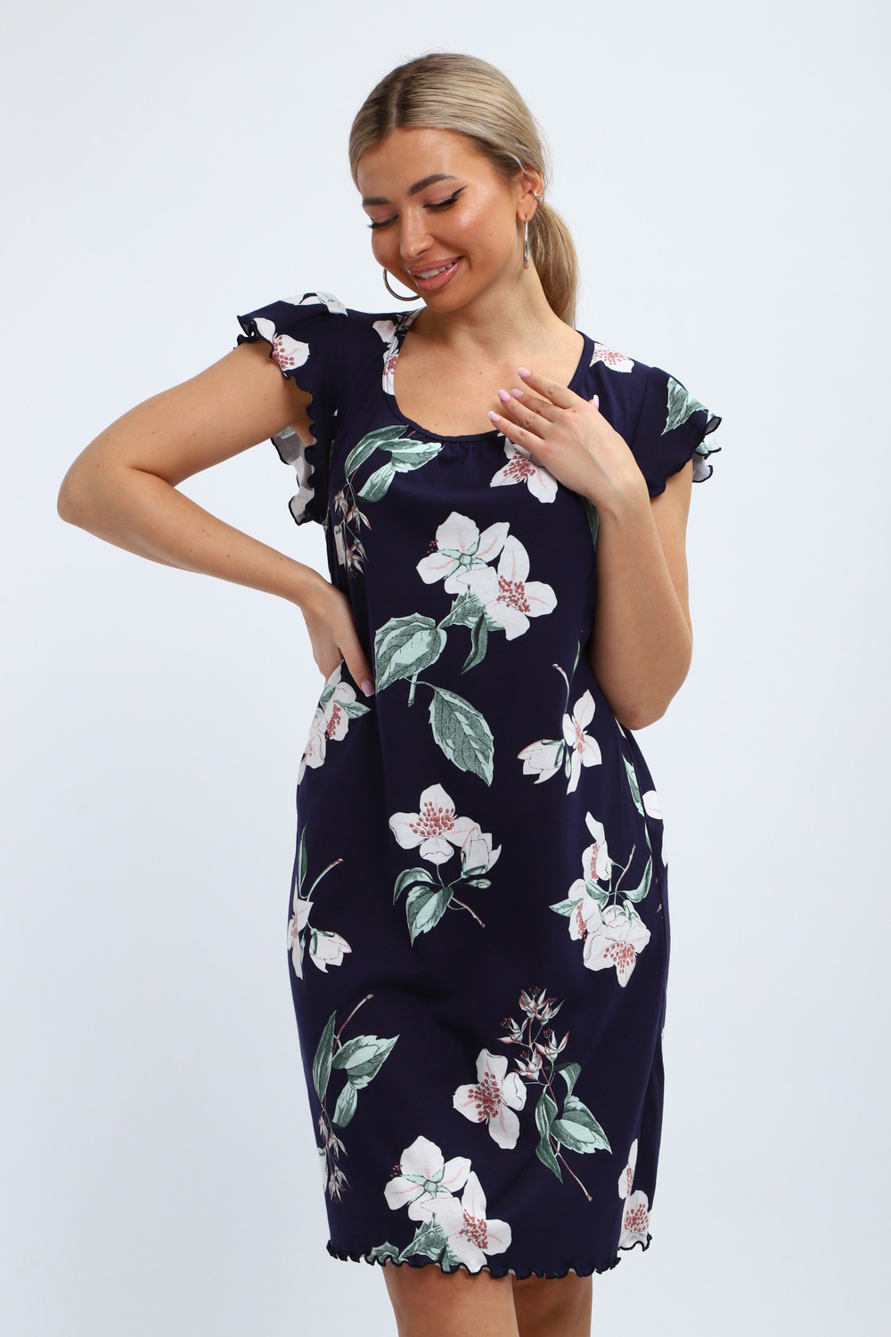 Милая и нежная хлопковая ночная сорочка женская от бренда "ИвановоТекстиль". Ночнушка свободного кроя, прекрасно сидит, обеспечивает легкость и непринужденность в движении. Изготовлена из 100% натурального хлопка, ткань мягкая, дышащая и приятная к телу. Легкая рубашка пижамная с коротким рукавом и овальным вырезом горловины. Длина изделия - до колен, очень красиво и выгодно смотрится. Рукава изящно отделаны. Послужит чудным и комфортным домашним платьем для сна, наполнит ваши будни очарованием. Выполнена в голубом тоне, имеет волшебный, нежный принт. Одинаково удобно, легко и непринужденно в нем ощутят себя как подростки, так и взрослые женщины. Особенно хорошо подойдут они для беременных и для будущих мам, а так же послужит отличным вариантом как одежда для полных. Волшебный подарок маме, бабушке, тете, сестре, подруге, дочери на день рождения, именины! Домашняя и повседневная одежда — это прекрасный выбор для подарка на такие замечательные праздники, как 8 марта или 14 февраля. Независимо от того, планируете ли вы порадовать бабушку, маму, дочь или подругу, наша продукция станет символом заботы и внимания к вашим близким. Подарив им такую одежду, вы не только проявите своё отношение, но и подарите комфорт и тепло, которые они смогут ощущать каждый день.