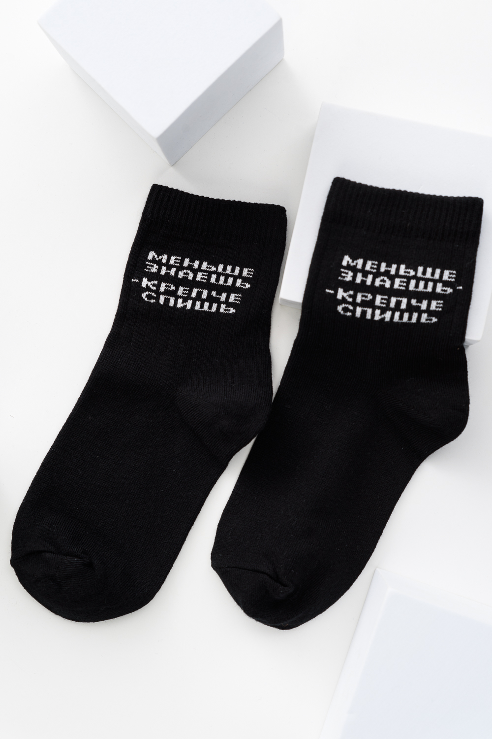 Подростковые носочки с надписью "Меньше знаешь - крепче спишь", связанные из натурального хлопка. Креативная модель мягко облегает ногу, не доставляя дискомфорт в течение всего дня. Носки сочетаются с разной обувью, подходят как мальчикам, так и девочкам.