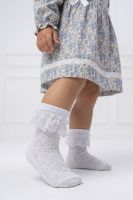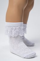 Очаровательные ажурные носочки – идеальный выбор для вашей принцессы! Лёгкие, дышащие и очень мягкие, они прекрасно подойдут для праздника или на каждый день. Нарядные кружевные рюши добавят образу нежности и элегантности. Приятные к коже и удобные в носке, эти носки подарят максимум комфорта маленьким ножкам. Размеры 23–31. Украсьте повседневный образ вашего ребёнка стильными деталями!