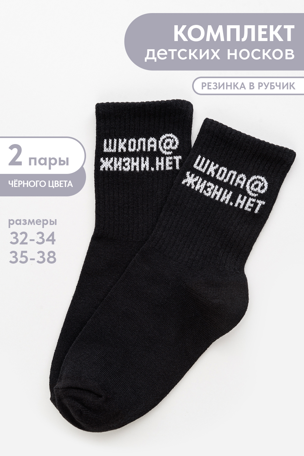 Комплект детских носков 2 пары. Широкая резинка. По верхней части носка надпись "Школ@ жизни.нет"