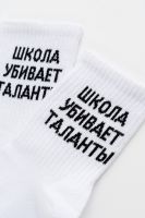 Комплект носков для детей. Широкая резинка, надпись "Школа убивает таланты" В комплекте 2 пары.