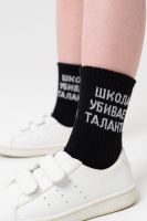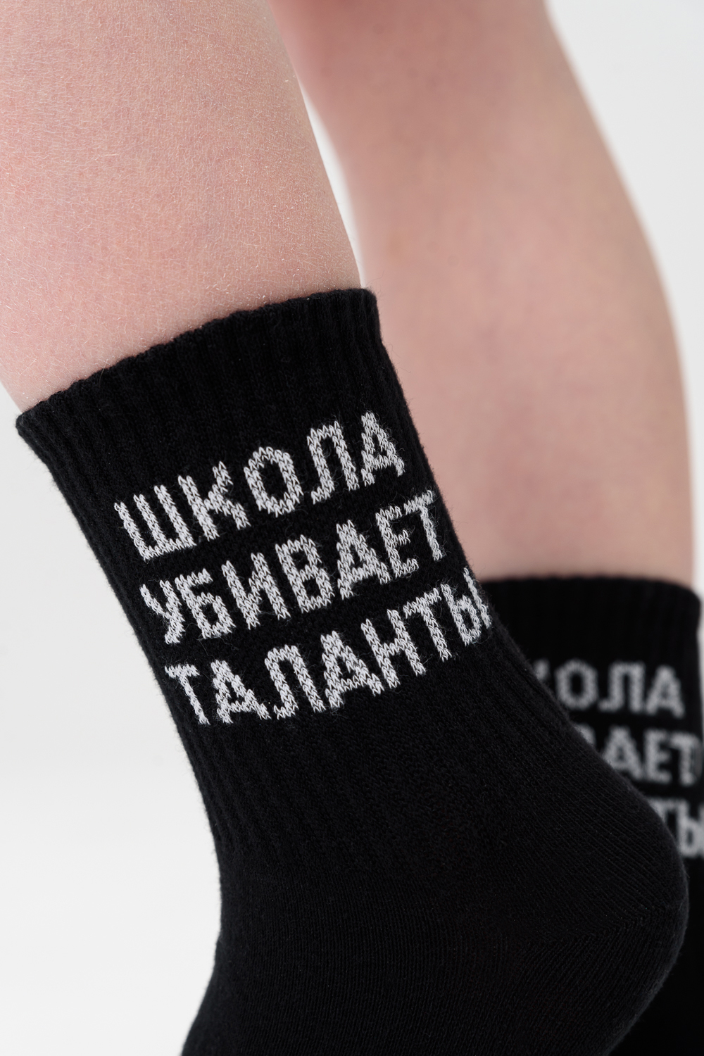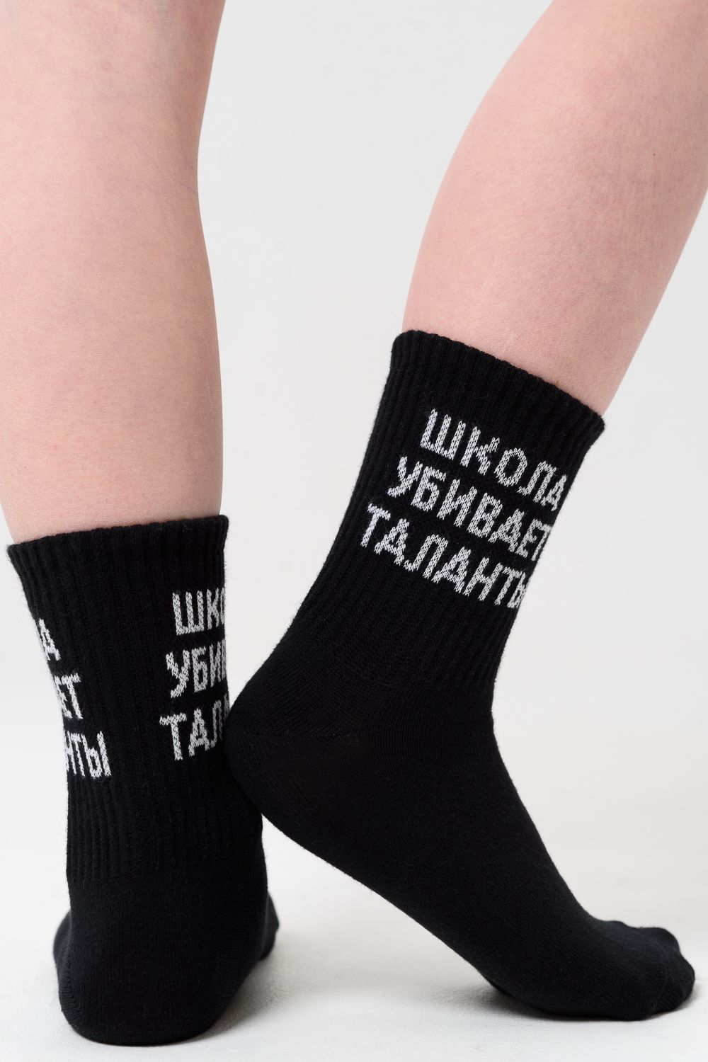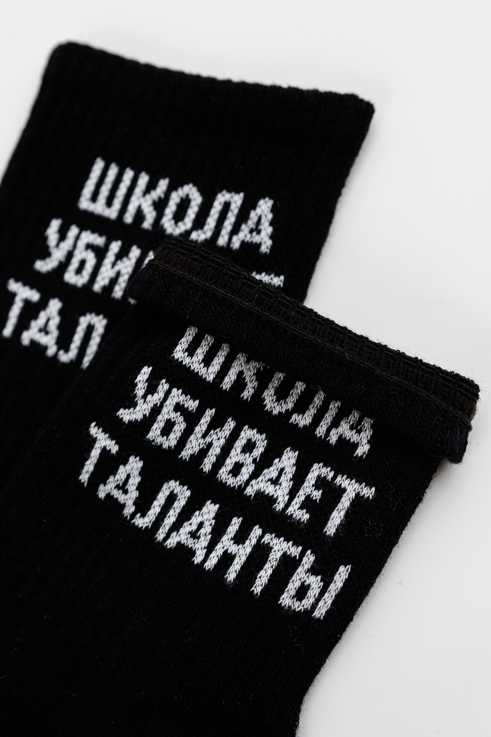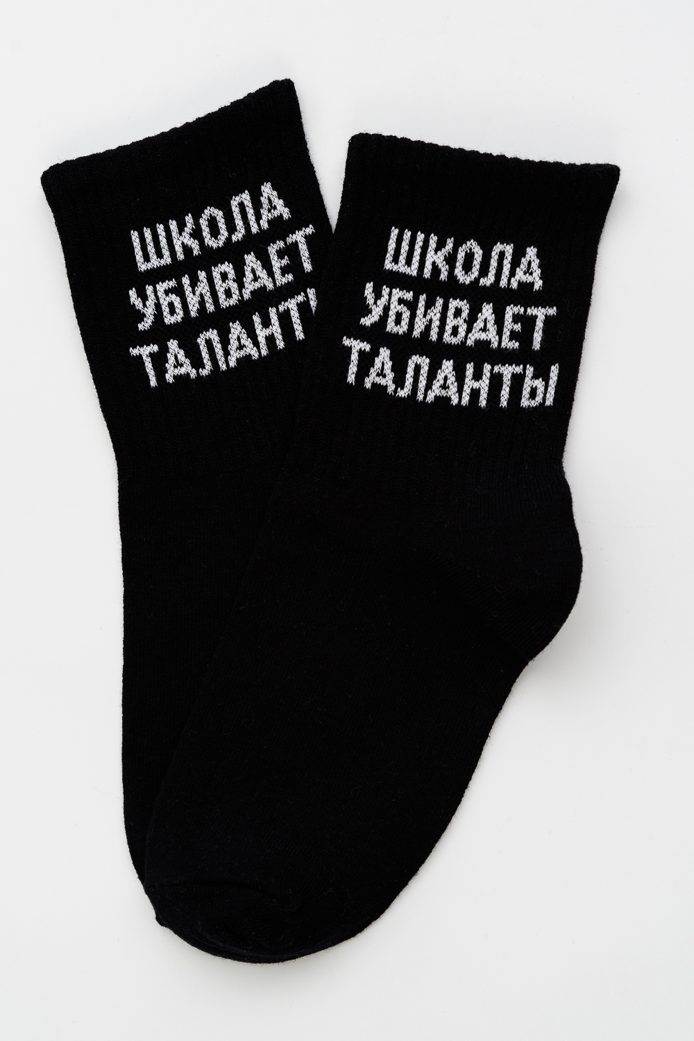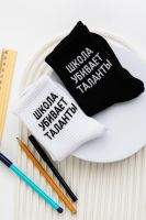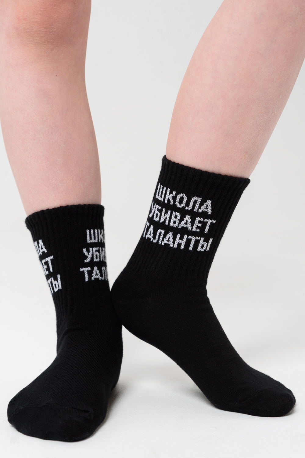 Комплект носков для детей. Широкая резинка, надпись "Школа убивает таланты" В комплекте 2 пары.