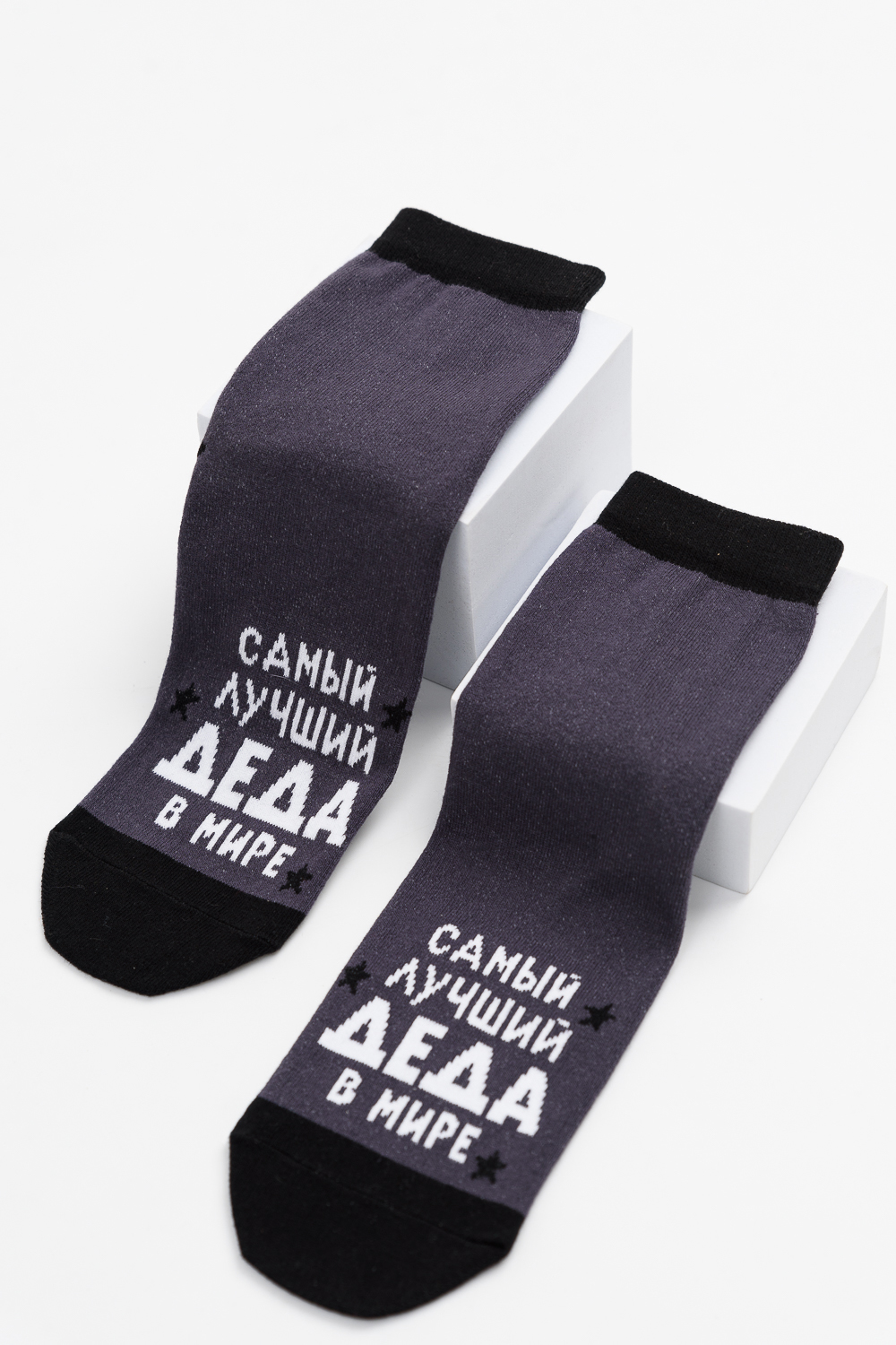 Мужские носки, комплект 1 пара. Мысок и пятка носка выполнены из другого цвета. На верхней части носка надпись "Лучший деда в мире"
