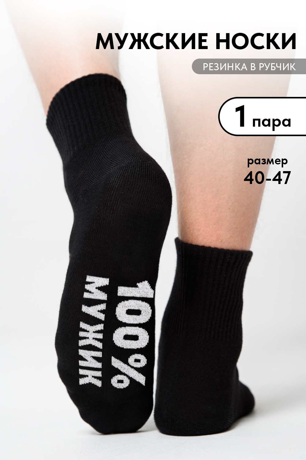 Носки для настоящего мужчины. На стопе надпись "Мужик 100%. Отлично подойдут для подарка.