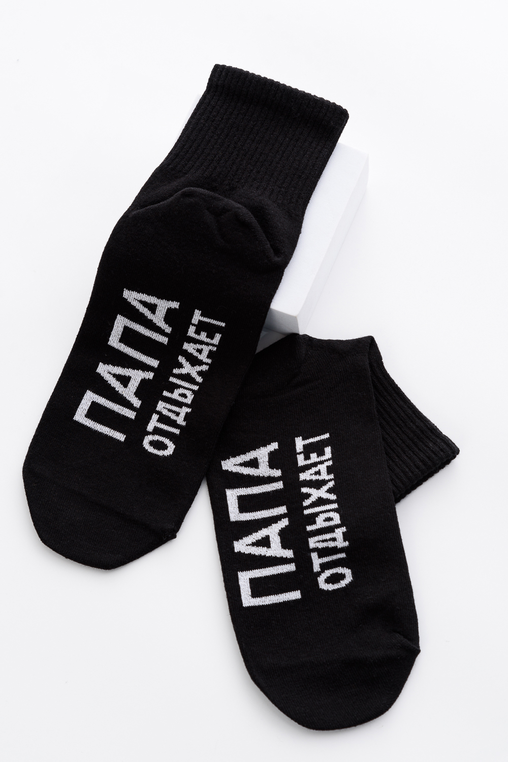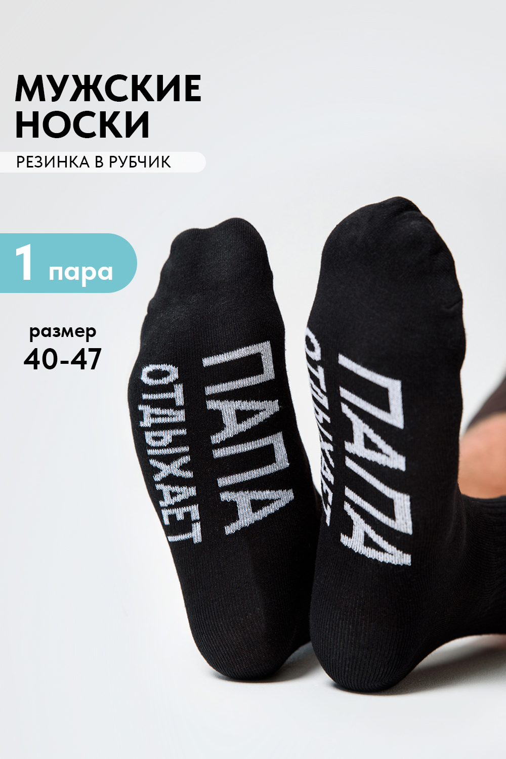 Мужские носки, комплект 1 пара. Широкая резинка по всей верхней части. Надпись на стопе "Папа отдыхает"