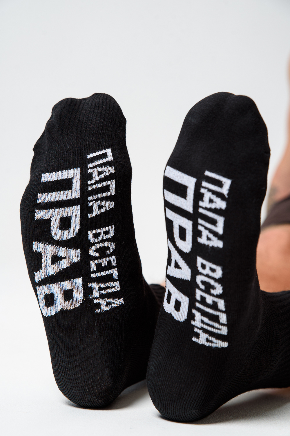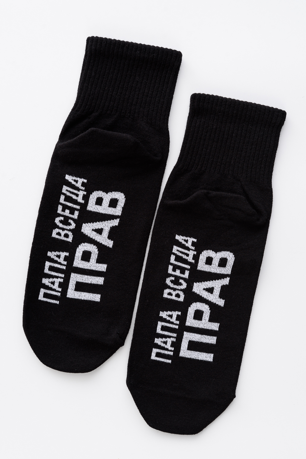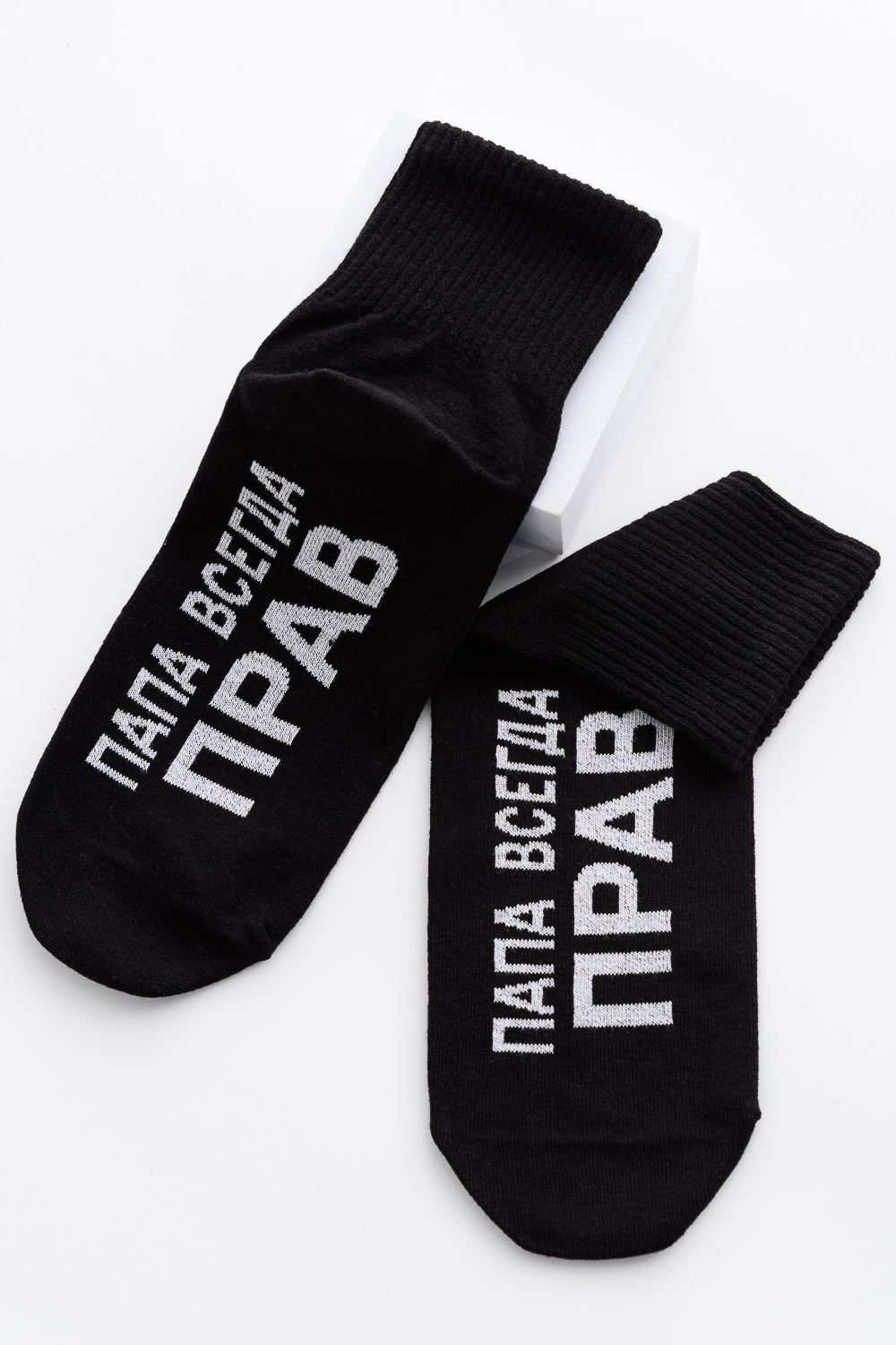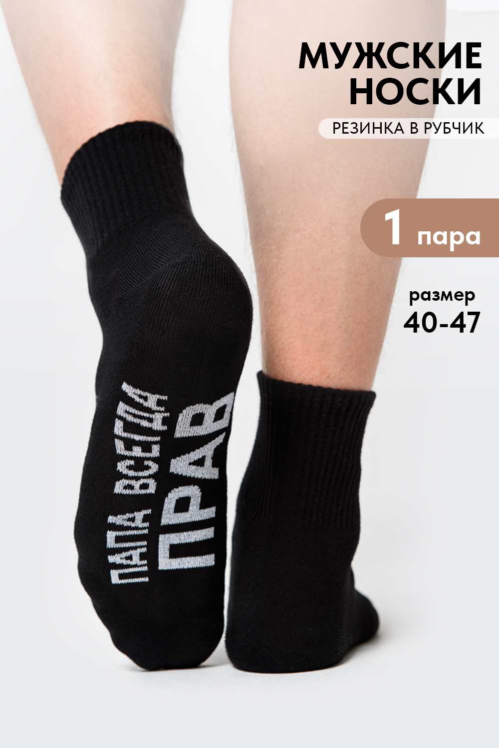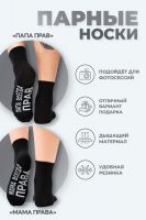Мужские носки комплект 1 пара. Широкая резинка по всей верхней части носка. Надпись на стопе "Папа всегда прав"