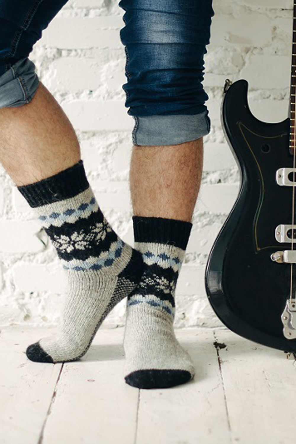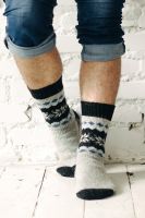 Здоровье человека идёт от ног, поэтому важно держать ноги в тепле не только зимой, но и межсезонье. Теплые вязаные носки с натуральной шерстью в составе согреют и подарят ощущение комфорта. Зимние носки мягкие и неколючие. Они плотно облегают ногу, но резинка не давит, удобны на каждый день, сохраняют яркость цвета и первоначальную форму после многочисленных стирок. Носки долговечны, они будут согревать вас несколько зимних сезонов. Шерстяные носки станут спасением в самые сильные морозы. Ногам будет комфортно даже при температуре до -40°С. Шерсть имеет уникальную способность быстро согревать и длительное время поддерживать правильную терморегуляцию. Она хорошо пропускает воздух и позволяет коже дышать. Также быстро отводит влагу, оставаясь при этом сухой. Шерстяные носки отлично тянутся, благодаря чему не сковывают движений. Благодаря полиамидным нитям имеют повышенную прочность изделия от истираний и разрывов, что значительно увеличивает продолжительность их службы. Шерстяные носки достаточно плотные, при этом мягкие, не раздражают, не вызывают зуда и не колются. Имеют широкую резинку и связаны с учетом анатомической формы ступни и голеностопа. В составе натуральной шерсти находятся природные соединения и ланолин, обладающие антисептическим эффектом. Это позволяет им оставаться свежими даже после нескольких дней ношения. Носочки с очаровательным зимним рисунком идеально подойдут для уютной новогодней фотосессии, для себя или в подарок близким на Новый год и другие праздники. Теплые носки станут прекрасной покупкой на зимний сезон. Подходят для занятия спортом: под коньки, лыжные и треккинговые ботинки. Они согревающие, поэтому незаменимы для рыбалки, охоты или во время прогулок на свежем воздухе. Теплые вязаные носки будут отличным подарком папе, дедушке, мужу, сыну, другу или коллеге. Особенно оценят данный подарок пожилые мужчины в холодные осенние и зимние вечера на даче или дома, кто имеет малоподвижную работу или часто находится на сквозняках.