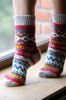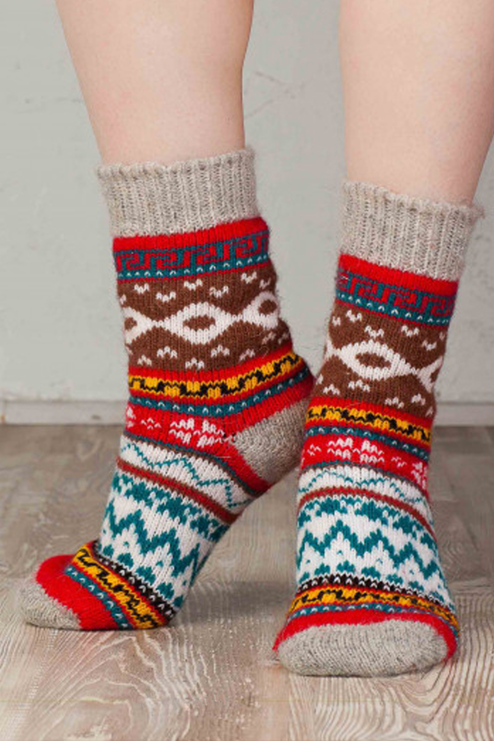 Здоровье человека идёт от ног, поэтому важно держать ноги в тепле не только зимой, но и межсезонье. Теплые вязаные носки с натуральной шерстью в составе согреют и подарят ощущение комфорта. Зимние носки мягкие и неколючие. Они плотно облегают ногу, но резинка не давит, удобны на каждый день, сохраняют яркость цвета и первоначальную форму после многочисленных стирок. Носки долговечны, они будут согревать вас несколько зимних сезонов. Шерстяные носки станут спасением в самые сильные морозы. Ногам будет комфортно даже при температуре до -40°С. Шерсть имеет уникальную способность быстро согревать и длительное время поддерживать правильную терморегуляцию. Она хорошо пропускает воздух и позволяет коже дышать. Также быстро отводит влагу, оставаясь при этом сухой. Шерстяные носки отлично тянутся, благодаря чему не сковывают движений. Благодаря полиамидным нитям имеют повышенную прочность изделия от истираний и разрывов, что значительно увеличивает продолжительность их службы. Шерстяные носки достаточно плотные, при этом мягкие, не раздражают, не вызывают зуда и не колются. Имеют широкую резинку и связаны с учетом анатомической формы ступни и голеностопа. В составе натуральной шерсти находятся природные соединения и ланолин, обладающие антисептическим эффектом. Это позволяет им оставаться свежими даже после нескольких дней ношения. Носочки с очаровательным зимним рисунком идеально подойдут для уютной новогодней фотосессии, для себя или в подарок близким на Новый год и другие праздники. Теплые носки станут прекрасной покупкой на зимний сезон. Подходят для занятия спортом: под коньки, лыжные и треккинговые ботинки. Они согревающие, поэтому незаменимы для рыбалки, охоты или во время прогулок на свежем воздухе. Теплые вязаные носки будут отличным подарком маме, бабушке, жене, подруге или коллеге. Особенно оценят данный подарок пожилые бабушки в холодные осенние и зимние вечера на даче или дома, кто имеет малоподвижную работу или часто находится на сквозняках.