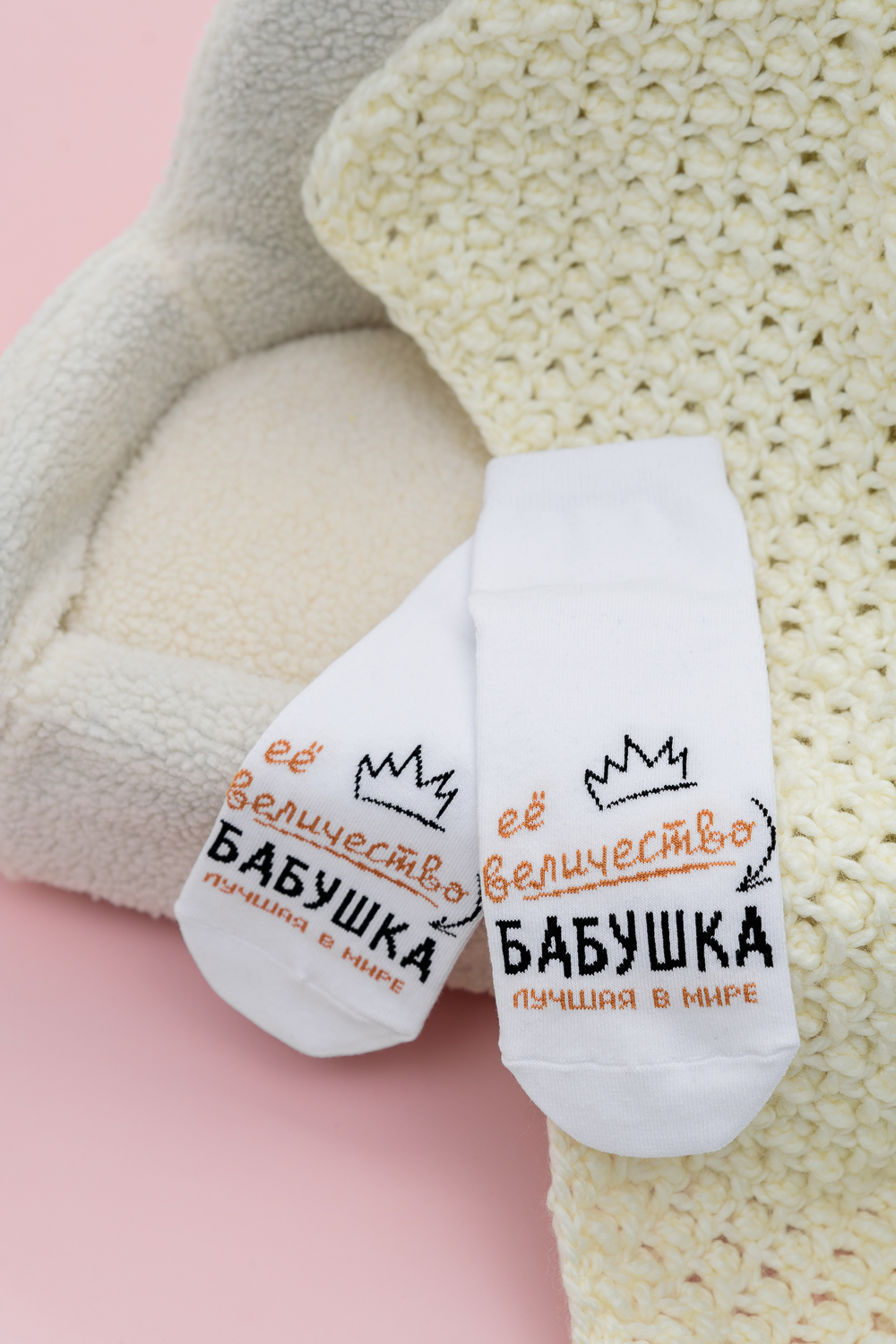 Комплект женских носков 2 пары. На верхней части носка надпись "Ее величество Бабушка, лучшая в мире"
