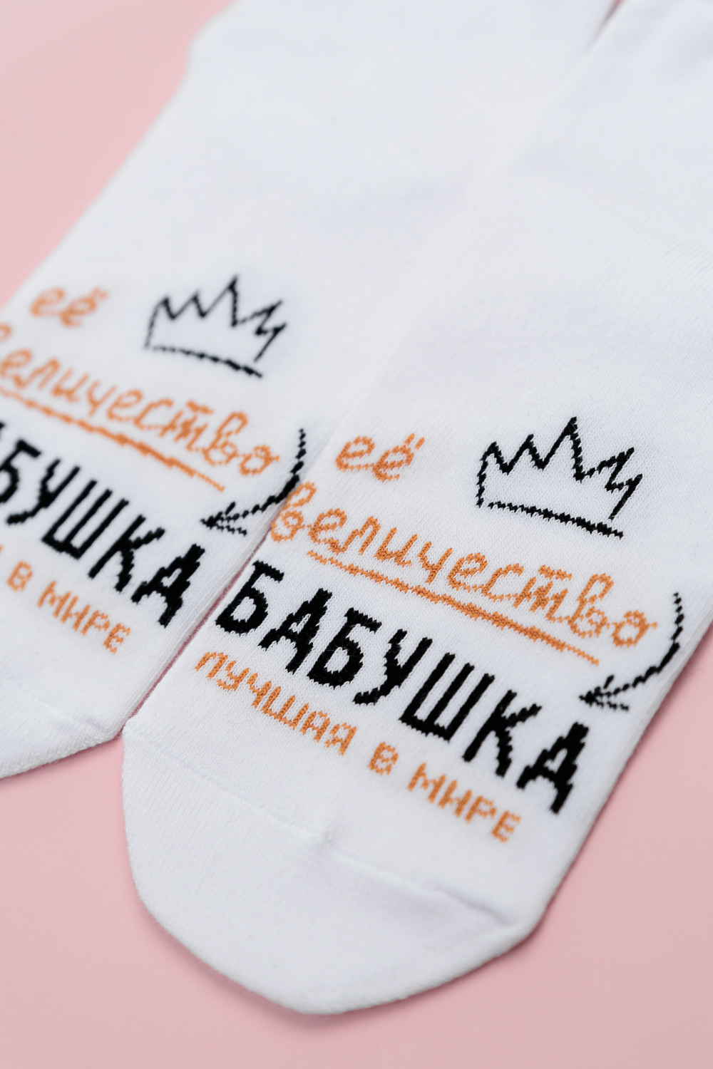 Комплект женских носков 3 пары. На верхней части носка надпись "Ее величество Бабушка, лучшая в мире"