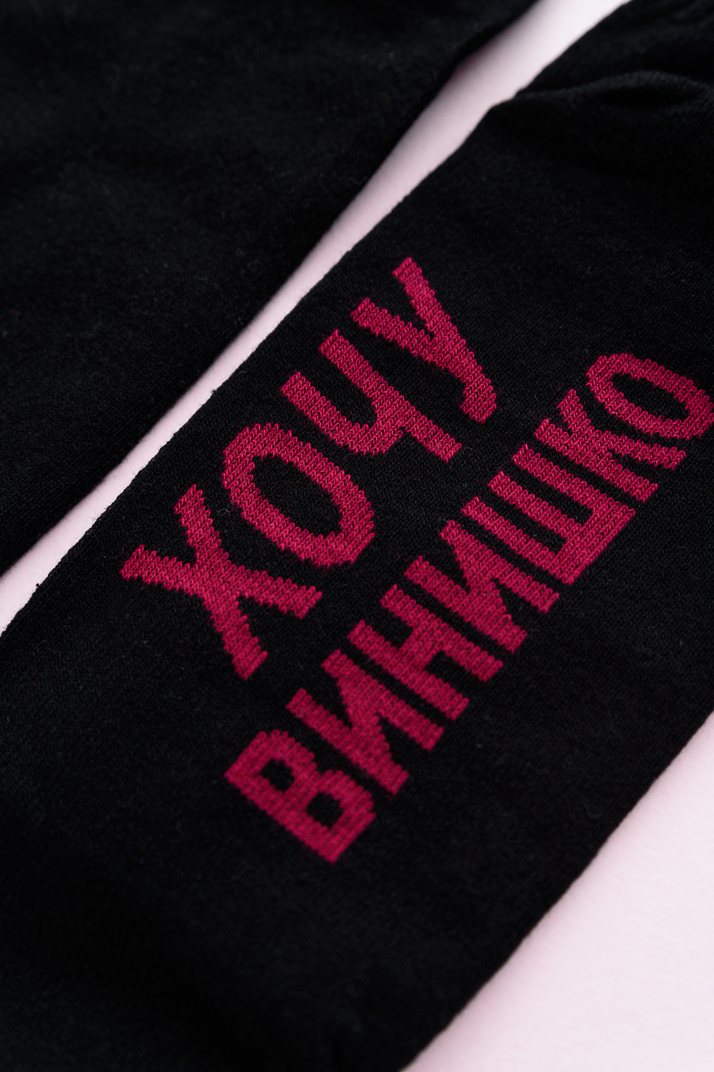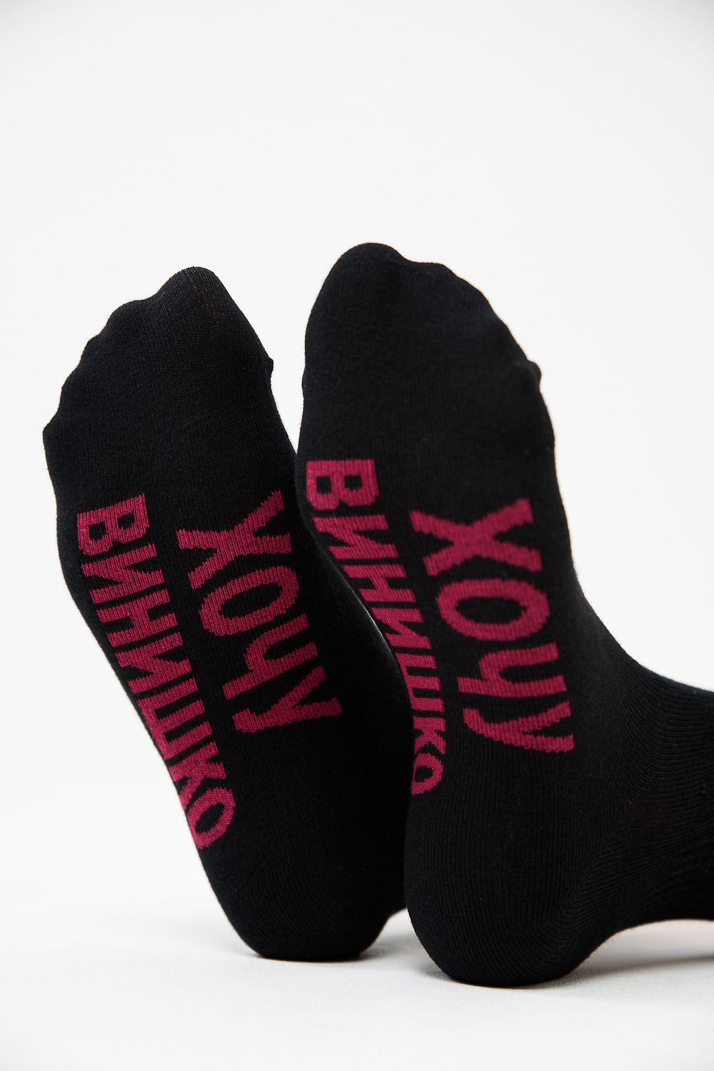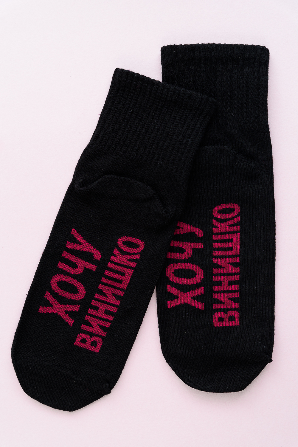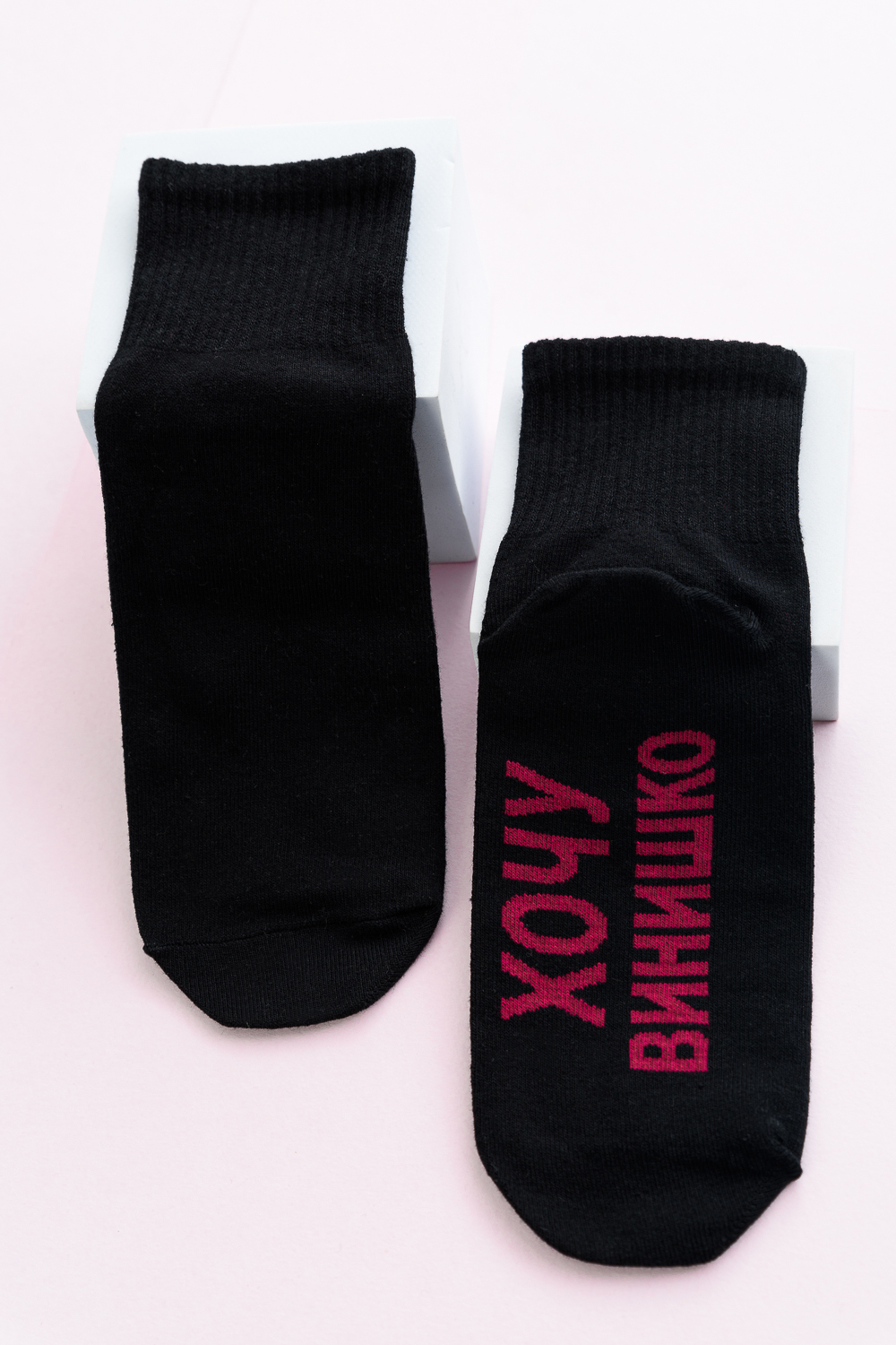 Комплект женских носков 1 пара. Широкая резинка. На стопе надпись "Хочу винишко".