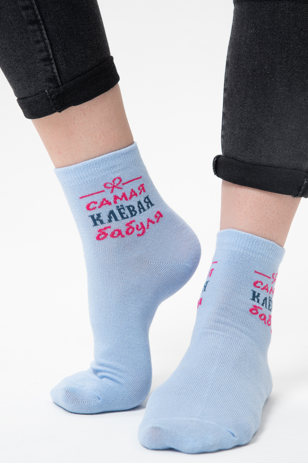Женские носочки с надписью "Самая клёвая бабуля" в верхней части носка. В комплекте 1 пара.