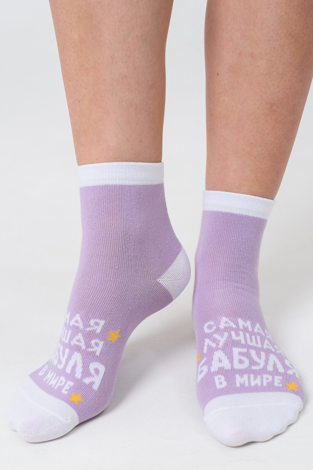 Комплект женских носков 2 пары. Пятка и мысок другого цвета. На верхней части носка надпись "Самая лучшая бабуля мире"
