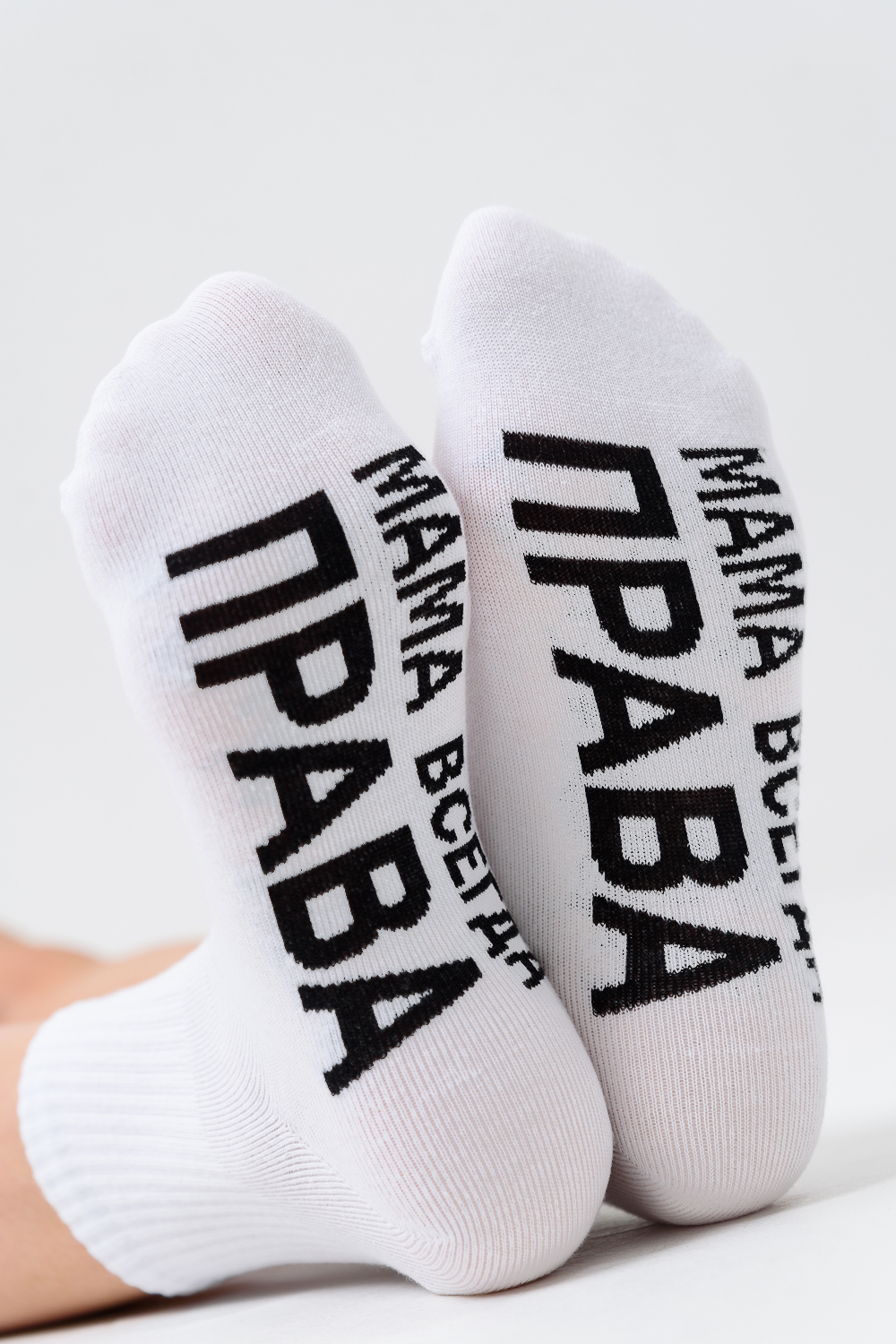 Комплект женских носков 1 пара. Широкая резинка. На стопе надпись "Мама всегда права".