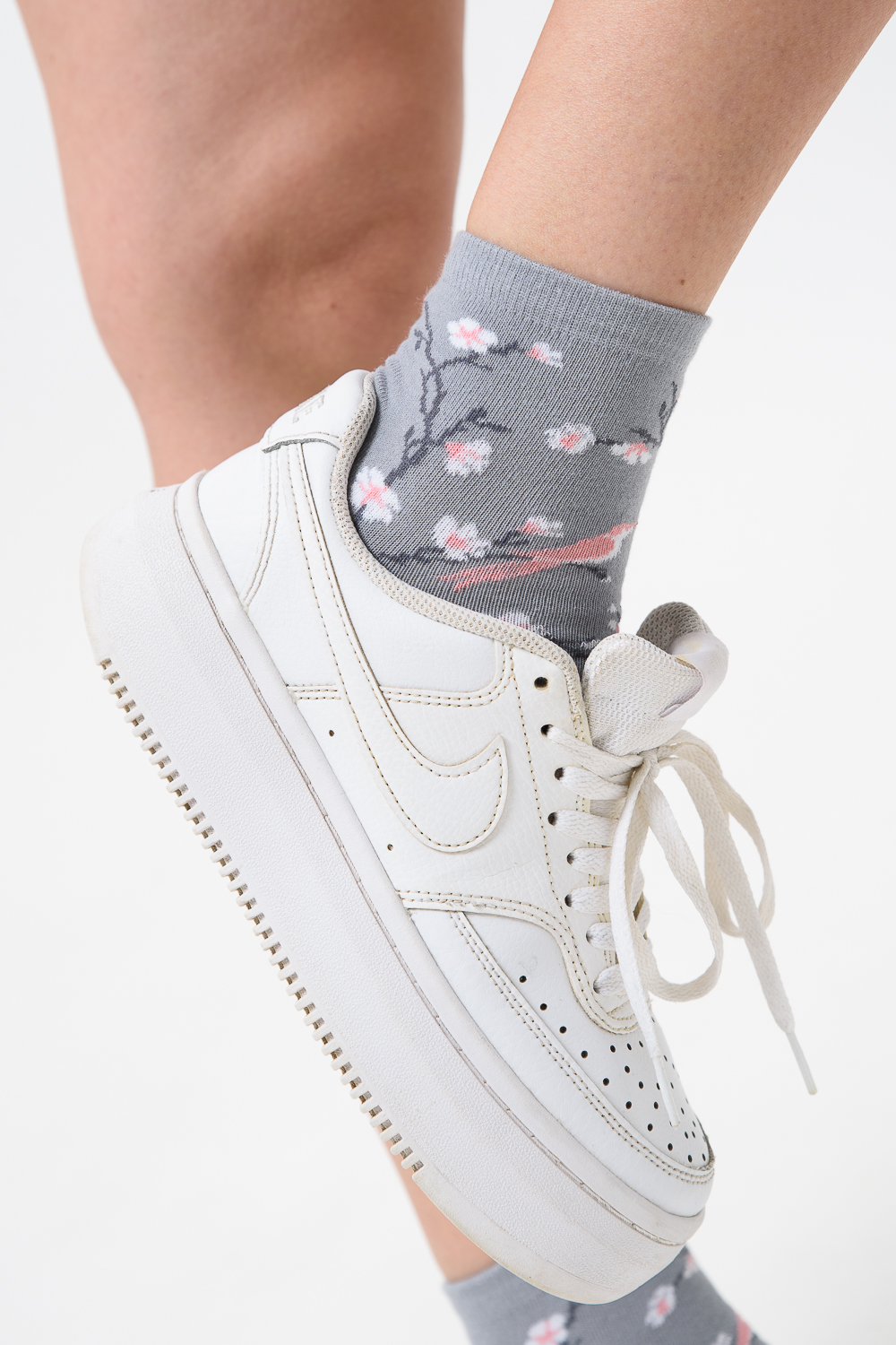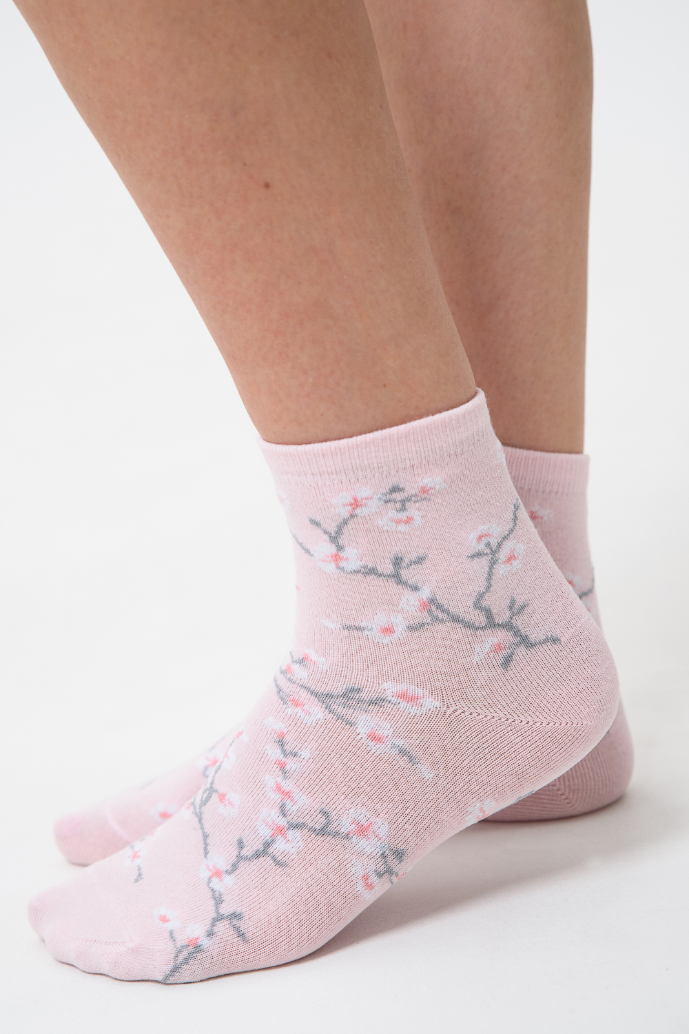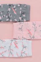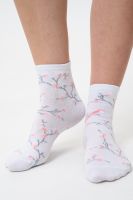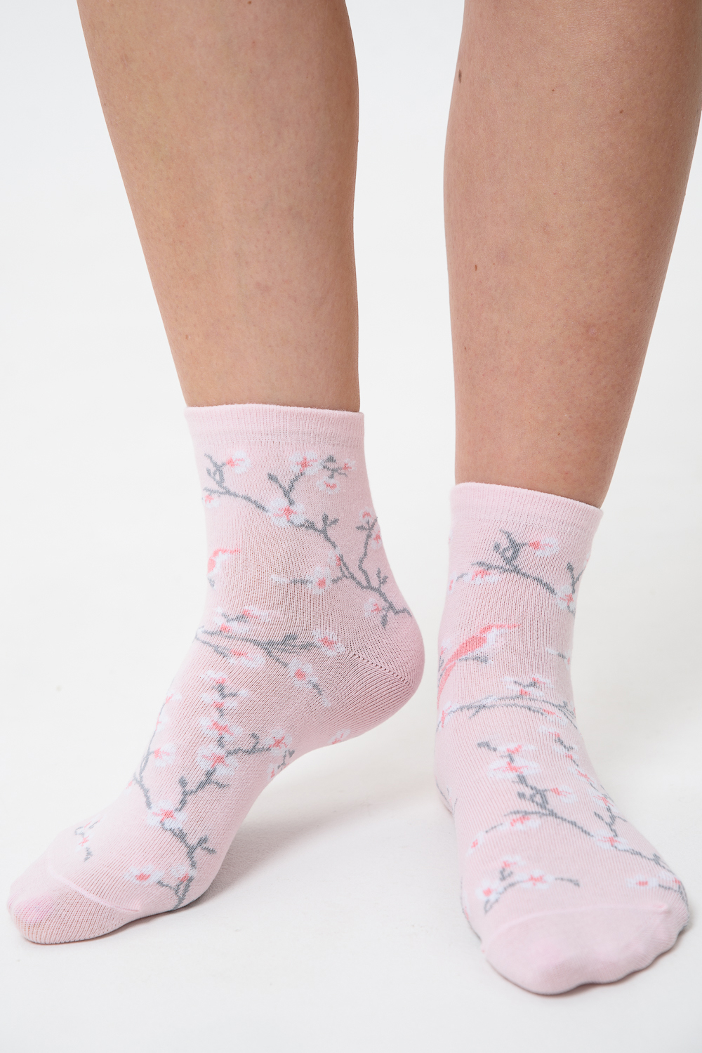 Подарочный комплект женских носочков. Очень нежные и приятные расцветки с изображением цветов и птиц. В комплекте три пары носков разных расцветок.