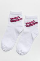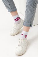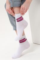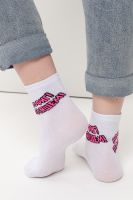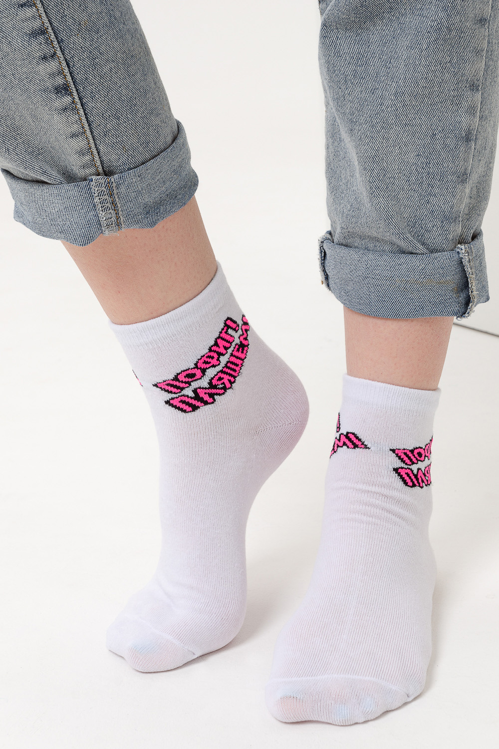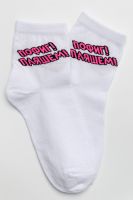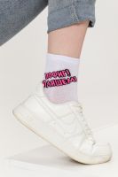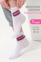 Удобные женские носки с надписью. Отличный выбор для девушек в качестве сувенира на 8 марта. Носки средней длины легко впишутся в повседневный лук. Прочные, из натурального хлопка с добавлением эластана, не выстирываются и не скатываются. Удобная широкая резинка.