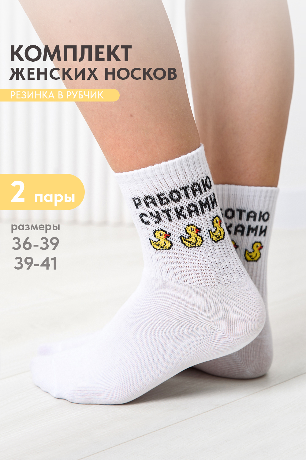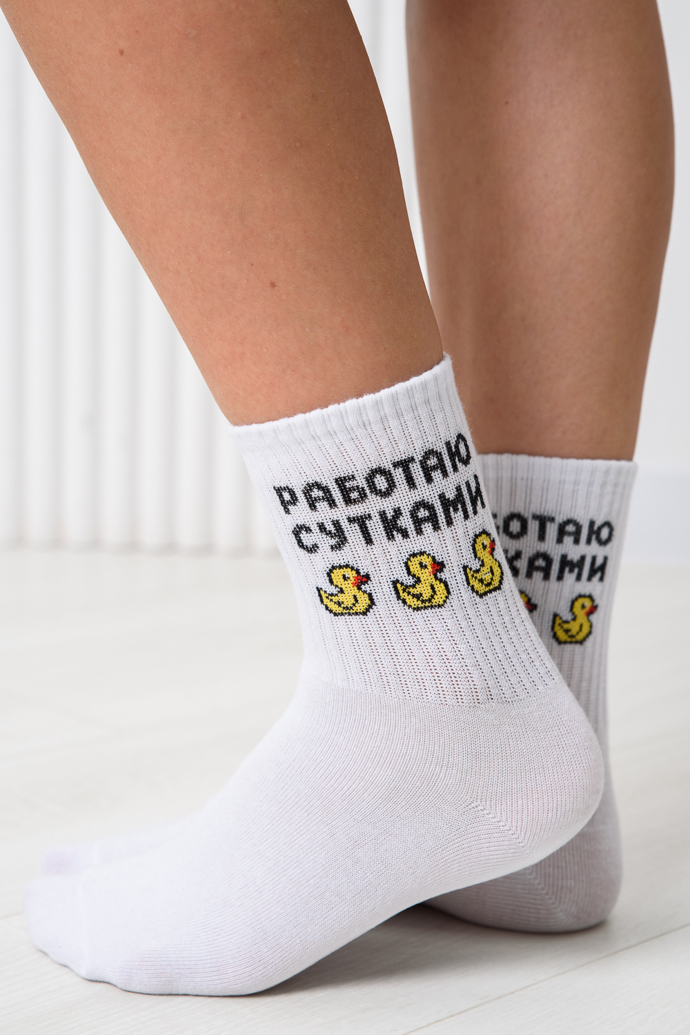 Милые женские носочки с изображением утят и надписью "Работаю сутками."