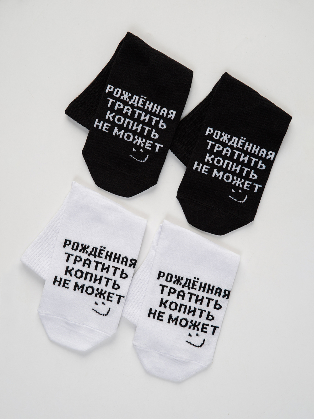 Добавь стиля каждому дню! Выбери носки для тех, кто знает: жизнь одна, а удовольствие — в каждой покупке! Яркий принт “Рождённая тратить, копить не может” поднимет настроение тебе и всем вокруг. Мягкий хлопок, отличная посадка, долговечность и нескучный дизайн — именно то, что нужно для максимального комфорта и самовыражения. Стань королевой шопинга и любви к себе, начиная с мелочей! Порадуй себя или подругу — твои идеальные носки ждут тебя!